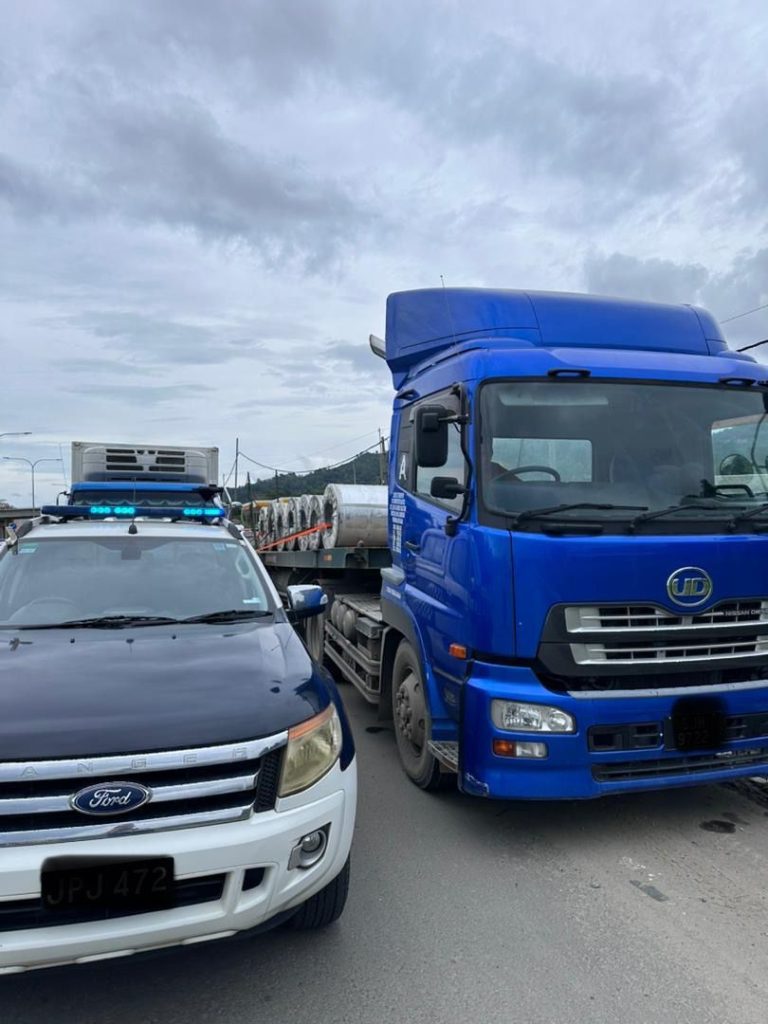 KOTA KINABALU: Jabatan Pengangkutan Jalan (JPJ) menyita sebuah lori Semi Trailer Kargo Am selepas didapati melakukan kesalahan memandu kenderaan barangan dalam tempoh larangan (road ban). Pengarah JPJ Sabah, Datuk Mohd Harris Ali berkata, kenderaan berkenaan ditahan semalam ketika sedang membawa muatan tujuh unit gelung aluminium. “Tindakan Sita telah diambil di bawah Kaedah 2(1), Kaedah-Kaedah Pengangkutan Jalan (Pengangkutan Barangan) RTR (PDGV). “Kenderaan berkenaan terus dibawa ke SPK JPJ Telipok bagi tujuan timbang, pemeriksaan dokumentasi, siasatan serta tindakan lanjut,” katanya dalam kenyataan media, hari ini. Menurutnya, JPJ Sabah akan terus mempergiatkan operasi penguatkuasaan dari semasa ke semasa bagi memastikan pematuhan undang-undang jalanraya dipatuhi sepenuhnya oleh pengendali kenderaan barangan. “Orang ramai diingatkan supaya sentiasa mematuhi peraturan yang ditetapkan demi keselamatan semua pengguna jalan raya,” katanya. – Info X