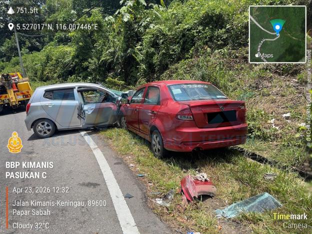 PAPAR: Dua lelaki maut selepas tersepit dalam kenderaan masing-masing dalam kemalangan membabitkan dua kereta di Jalan Bukit Kimanis – Keningau, dekat sini, tengah hari tadi. Dalam kejadian kira-kira jam 11.30 pagi itu, kemalangan membabitkan sebuah Perodua Axia dan Proton Saga yang dipercayai bertembung, menyebabkan dua pemandu lelaki berusia 61 dan 35 tahun disahkan meninggal dunia di lokasi kejadian. Ketua Balai Bomba dan Penyelamat (BBP) Kimanis, Penolong Penguasa Bomba Nelson Ponji berkata, sepasukan tujuh anggota bersama jentera dikejarkan ke lokasi sejurus menerima panggilan kecemasan. “Sebaik tiba, didapati kedua-dua mangsa tersepit di bahagian tempat duduk pemandu. “Pasukan bomba kemudian menjalankan operasi mengeluarkan mangsa menggunakan peralatan khas sebelum kedua-duanya disahkan meninggal dunia oleh pihak Kementerian Kesihatan Malaysia (KKM),” katanya ketika dihubungi hari ini. Menurutnya, seorang lagi mangsa wanita berusia 52 tahun yang juga penumpang Perodua Axia mengalami kecederaan dan dihantar ke hospital menggunakan ambulans KKM untuk rawatan lanjut. “Mayat kedua-dua mangsa kemudian diserahkan kepada pihak polis untuk tindakan selanjutnya. “Operasi terkawal pada jam 12.20 tengah hari sebelum ditamatkan sepenuhnya pada jam 12.30 tengah hari selepas tiada bahaya lain di lokasi,” katanya. – Info X