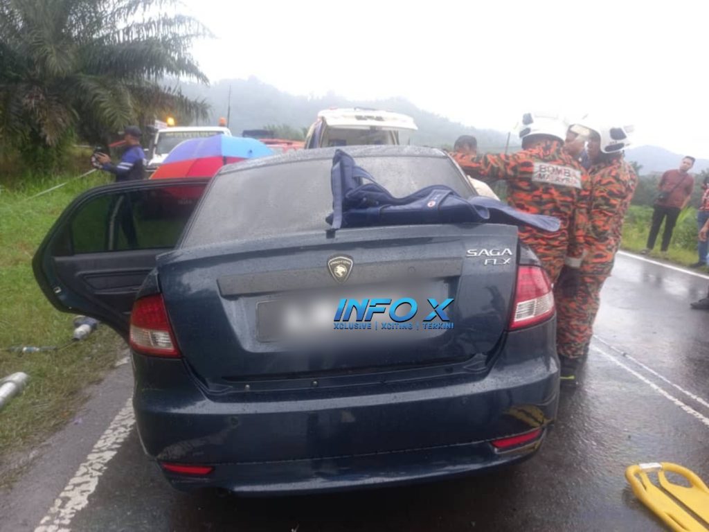 Dalam kejadian 3.30 petang itu, mangsa berusia lingkungan 50 tahun yang tersepit dalam kereta jenis Proton Saga disahkan meninggal dunia di tempat kejadian.