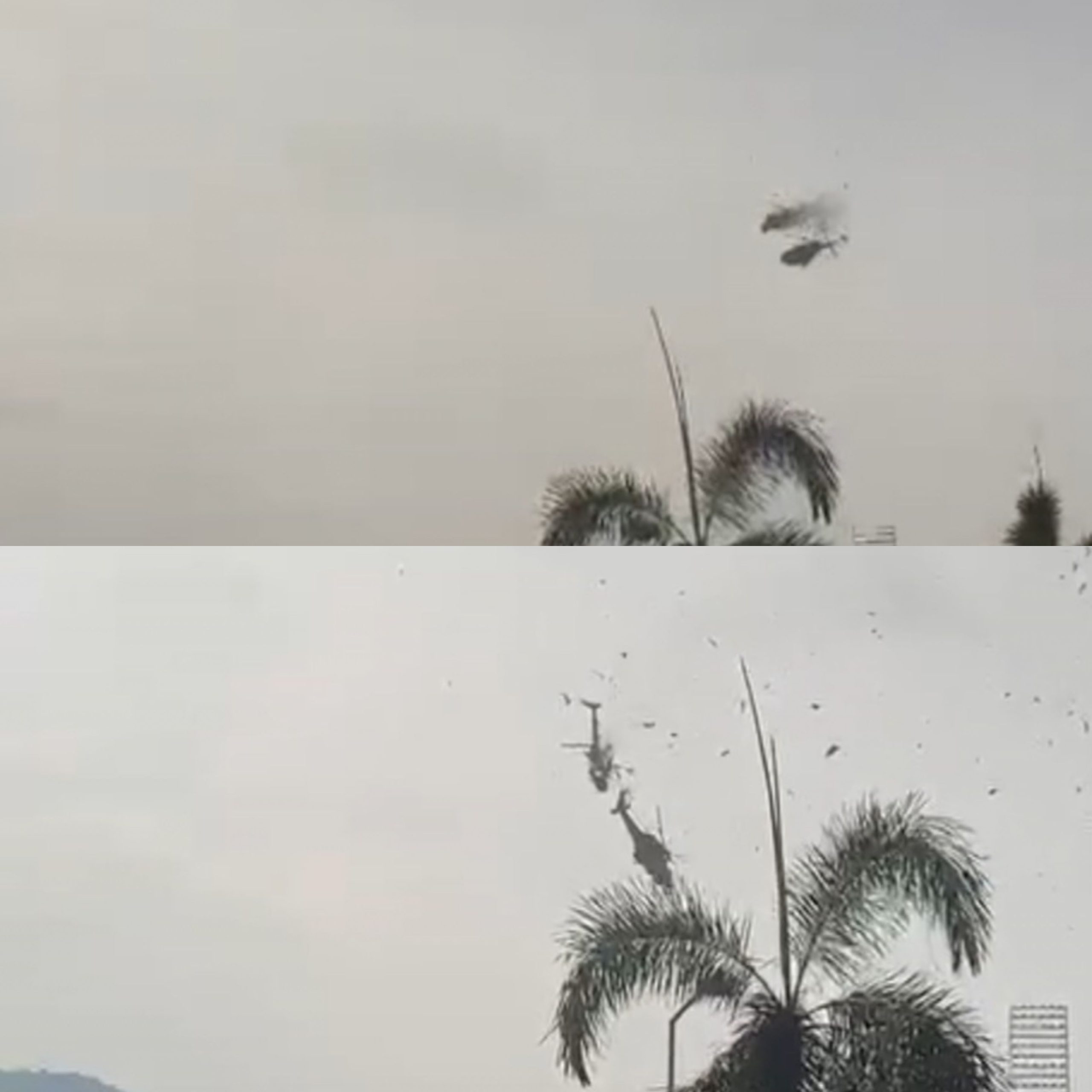 Dua helikopter dilaporkan berlanggar di ruang udara dan terjatuh di Pangkalan Tentera Laut Diraja Malaysia (TLDM) Lumut, di Lumut, pagi ini. – Info X