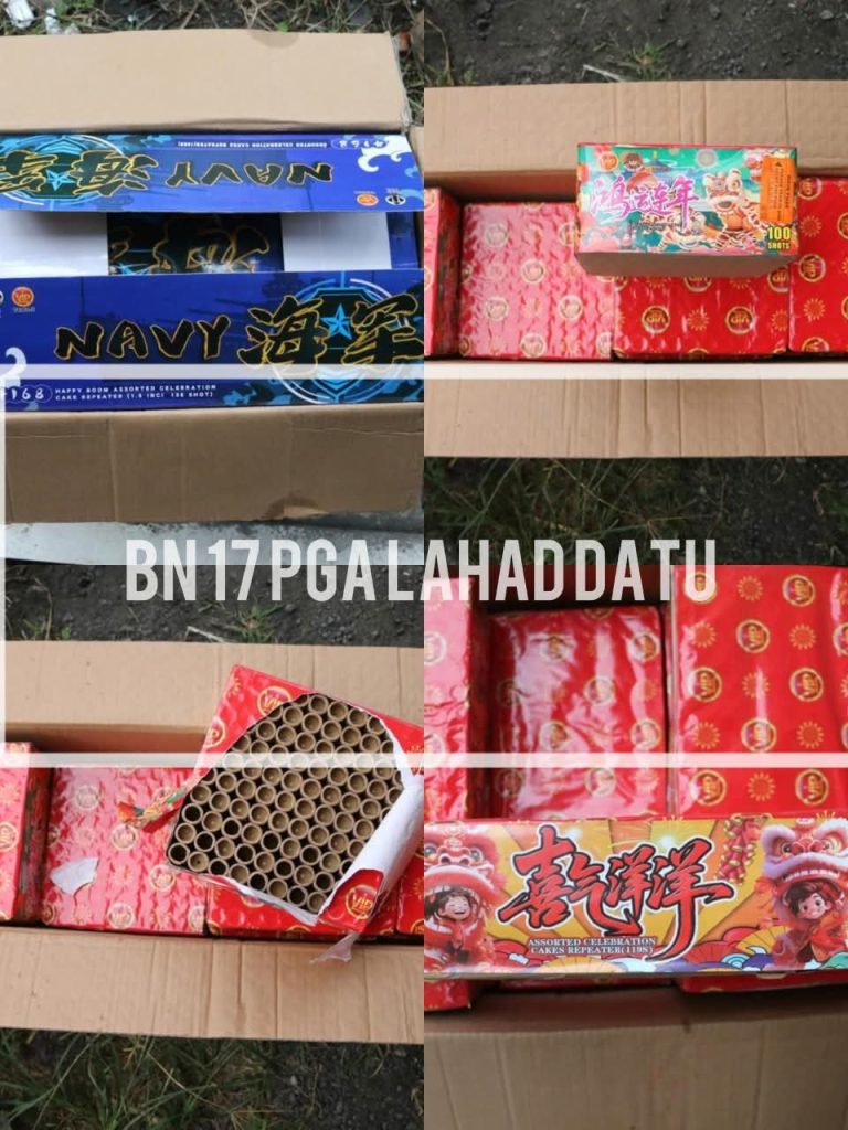 “Sementara itu, pada 18 Mac di Kampung Burung, dua lelaki tempatan ditahan bersama pelbagai jenis mercun tanpa permit selain dua lori yang digunakan untuk pengangkutan, dengan nilai rampasan RM494,250.