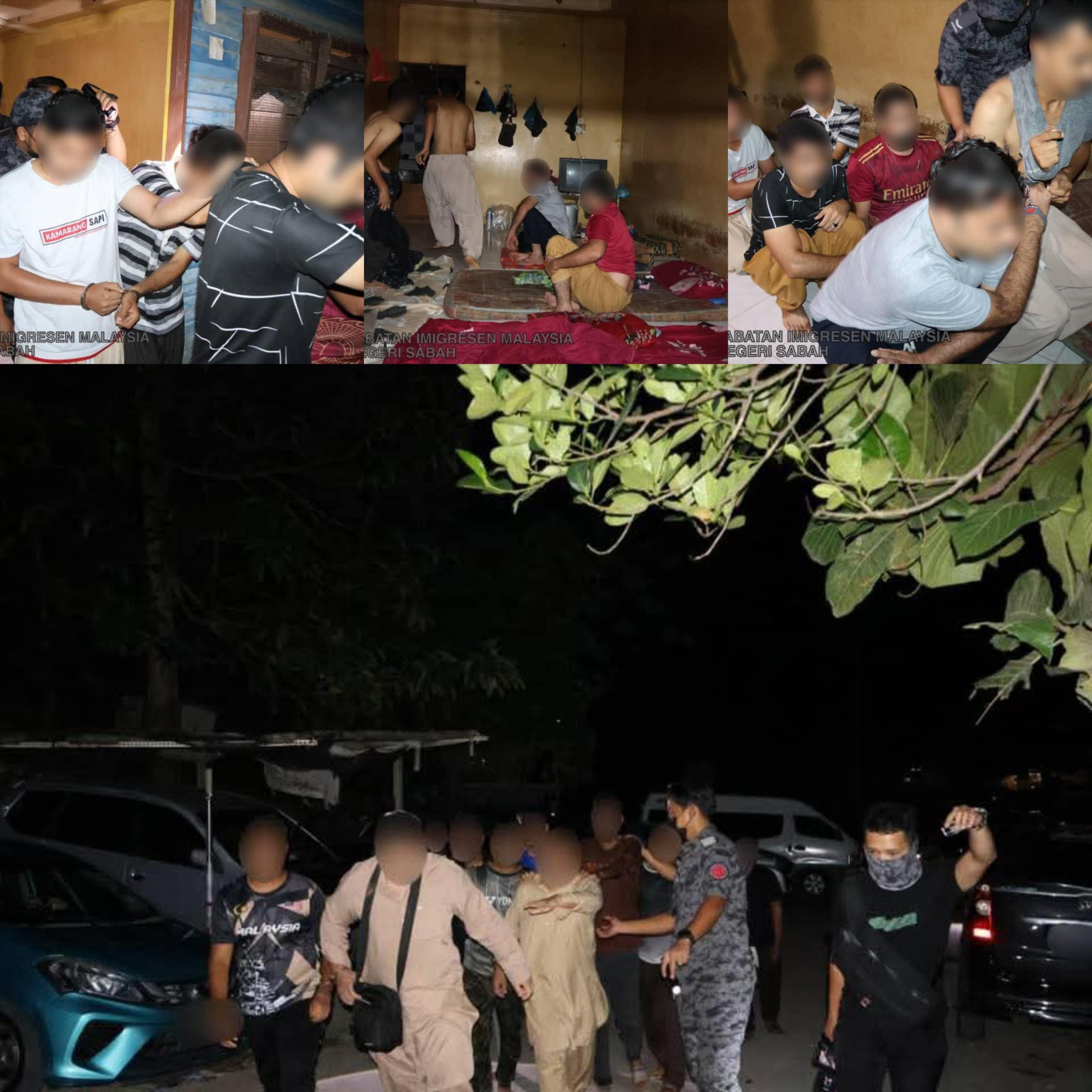 KOTA KINABALU: Jabatan Imigresen Malaysia (JIM) Sabah menahan seramai 19 pendatang asing tanpa izin (PATI) warga Pakistan dalam ‘Ops Sapu Khas’ di kawasan rumah tidak bernombor di Skim Penempatan Telipok, di sini, hari ini.