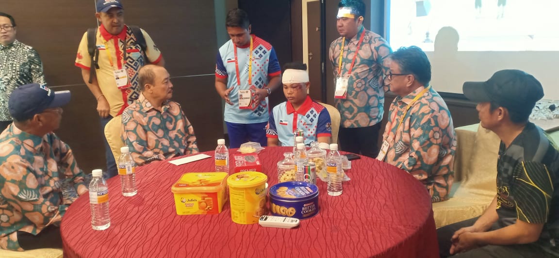 Kelihatan digambar Hajiji memberi kata-kata semangat kepada Akmal agar tidak berputus asa untuk terus memajukan diri dalam sukan berbasikal. “Akmal masih muda dan masih boleh sertai dua SUKMA akan datang lagi,” katanya.