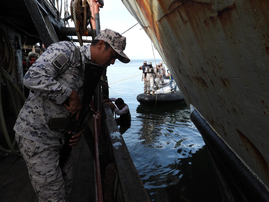 laut dan bersembunyi di antara ruang sempit bot-bot nelayan bagi mengelak daripada diperiksa.
