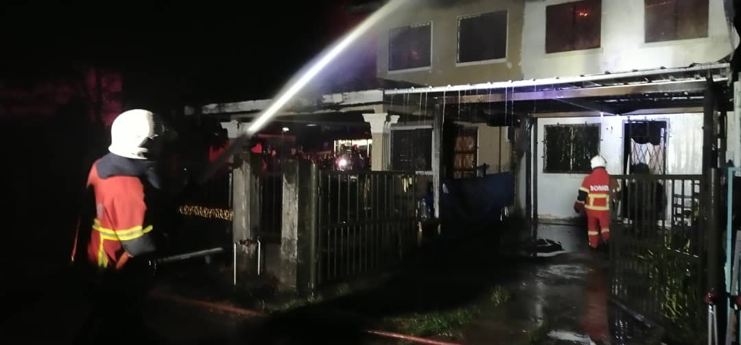 KINARUT: Tiga rumah teres setingkat di Taman Limauan, di sini terbakar dalam kejadian, tengah malam tadi.