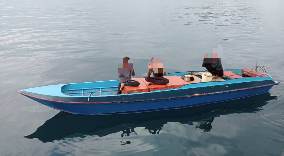 Menurutnya, manakala bot kedua bersama tiga lelaki ditahan di kedudukan 18.80 batu nautika Timur Laut Pulau Mengalum.