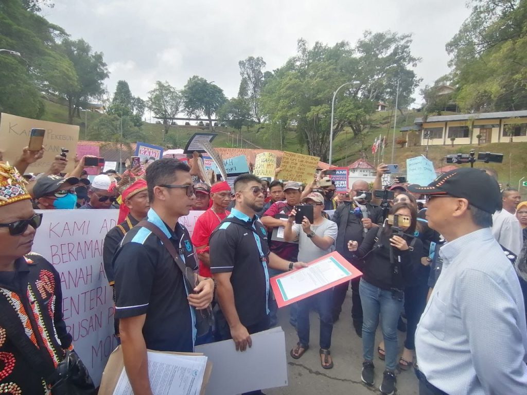 KOTA KINABALU: Seramai kira-kira 500 penduduk daripada lapan kampung di tiga daerah berarak sejauh 500 meter sehingga di hadapan pintu pagar utama bangunan Jabatan Tanah dan Ukur (JTU) Sabah bagi menuntut hak berkaitan tanah di kawasan masing-masing.