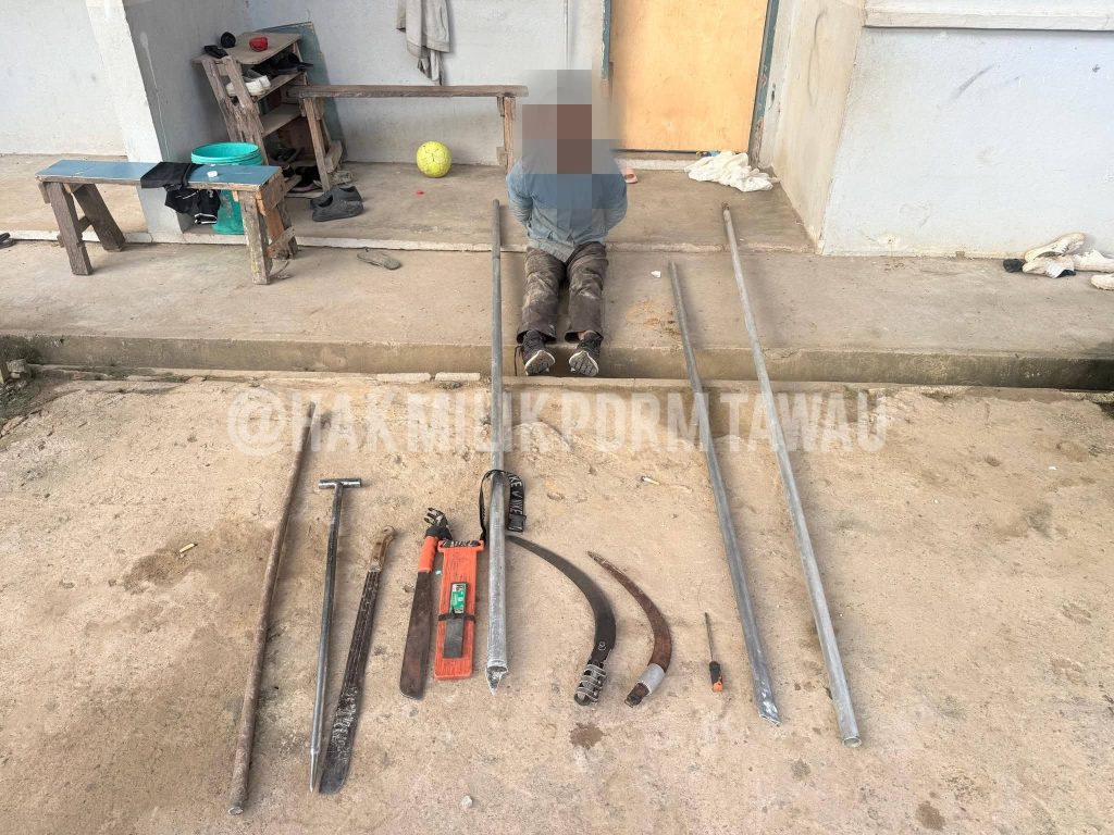 “Turut dirampas dua bilah sabit, sebilah parang, pemutar skru, besi ‘loading’ serta empat batang paip besi.