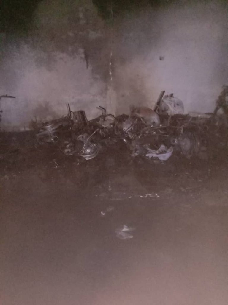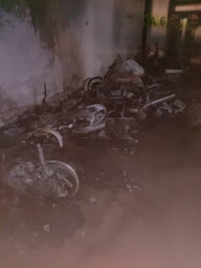 “Kebakaran membabitkan sembilan motosikal pelbagai jenis serta dua kereta jenis Perodua Axia dan Mercedez Benz terbakar 100 peratus.