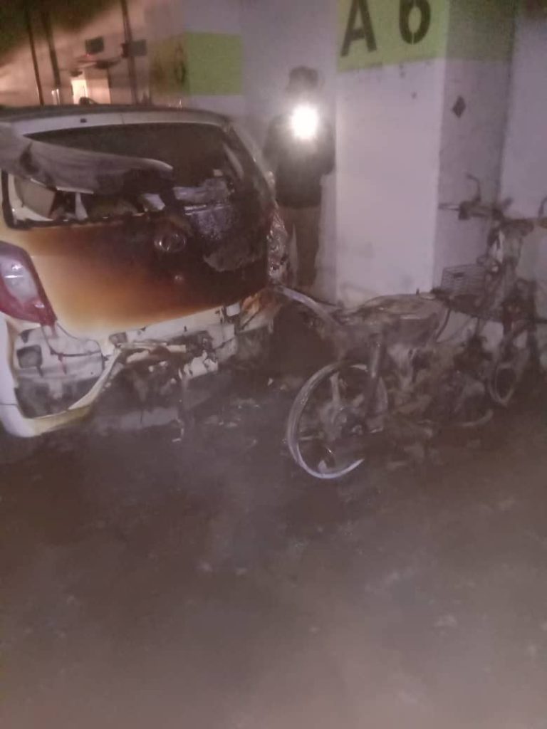 9 motosikal, 2 kereta musnah terbakar di Platinum Apartment