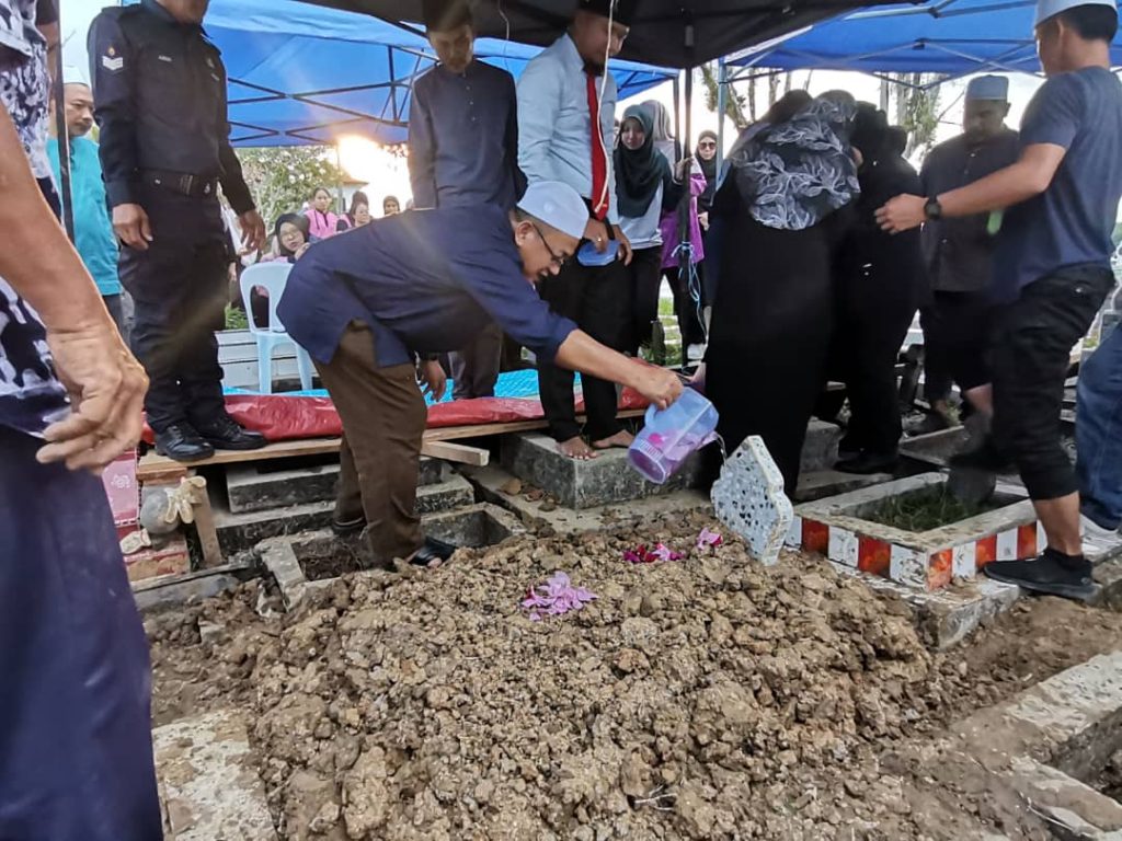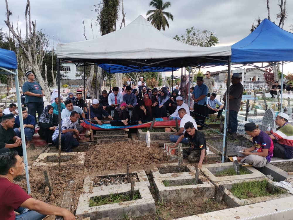 LAHAD DATU: Jenazah anak perempuan Ketua Polis Daerah (KPD) Lahad Datu selamat dikebumikan di Tanah Perkuburan Islam Kampung Hj Khamis, di sini, petang tadi.