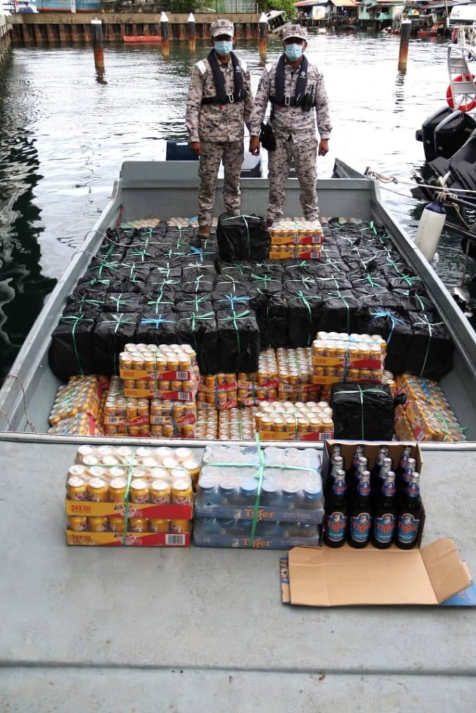 “Ketika itu, tekong bot telah melarikan diri ke hutan paya bakau berhampiran. Pemeriksaan lanjut di atas bot menemukan sejumlah 10,728 tin dan botol minuman keras pelbagai jenama.