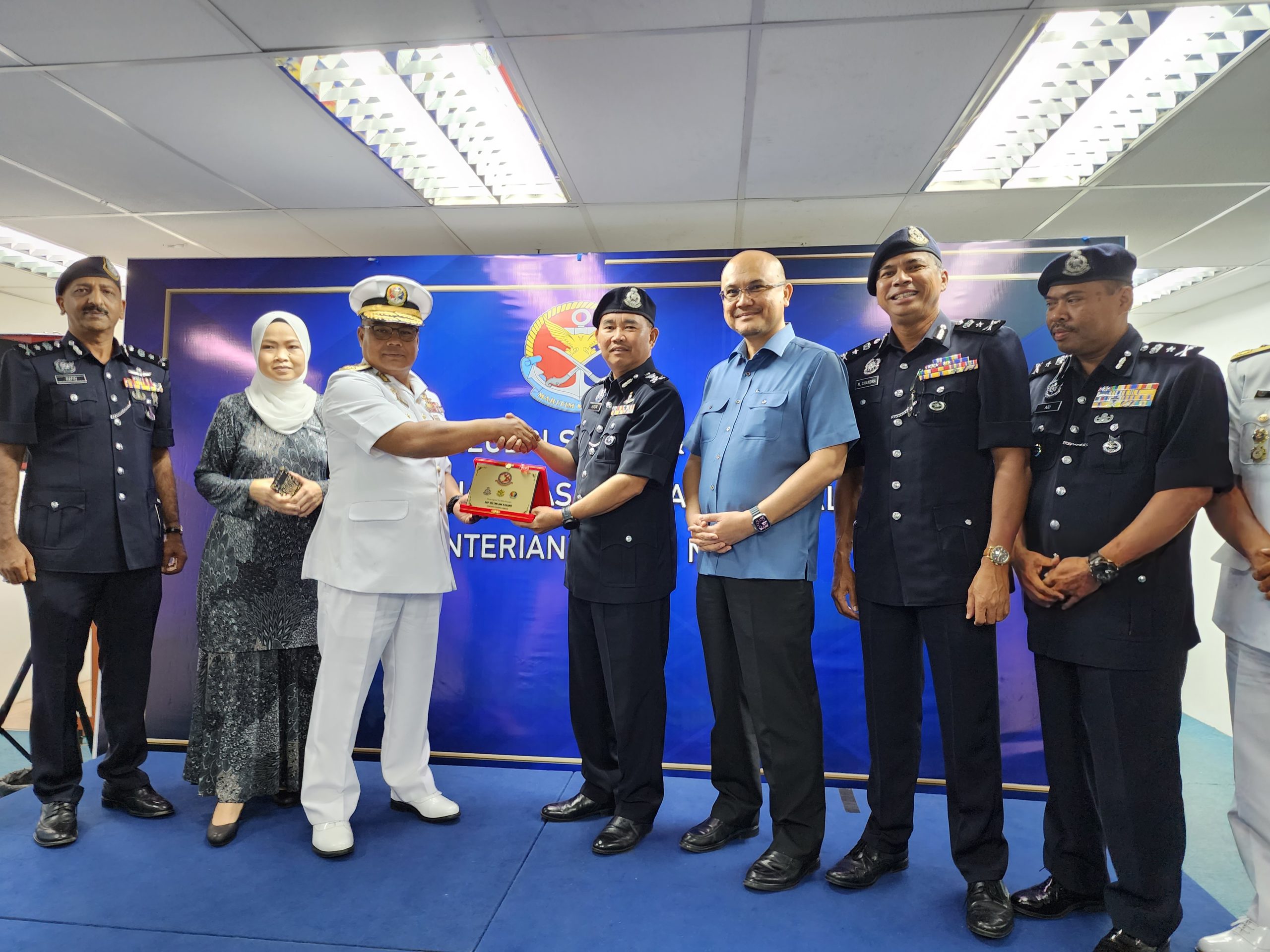Turut hadir, Komander ESSCOM, Deputi Komisioner Victor Sanjos dan Ketua Staf Bahagian Operasi Darat ESSCOM, Senior Asisten Komisioner (SAC) Datuk Chandrasehkaran A/L Muthu.