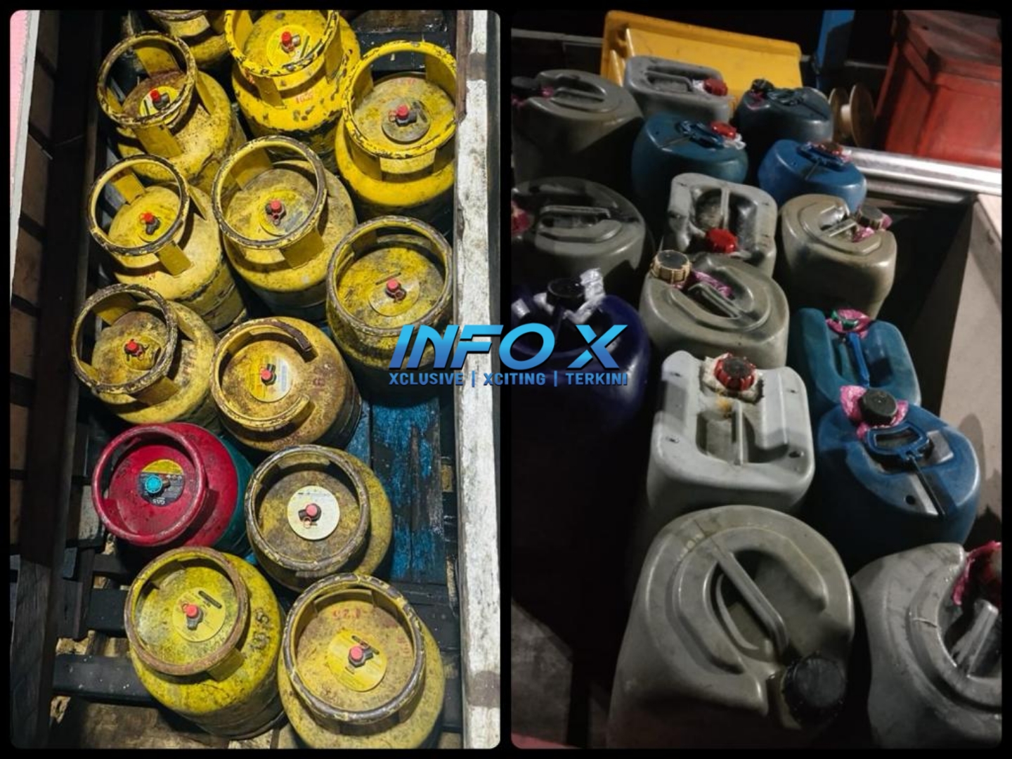 Beliau berkata, hasil pemeriksaan lanjut menemukan sejumlah 13 tong gas petroleum cecair seberat 14 kilogram per tong serta 15 tong berisi minyak petrol dianggarkan sebanyak 500 liter.