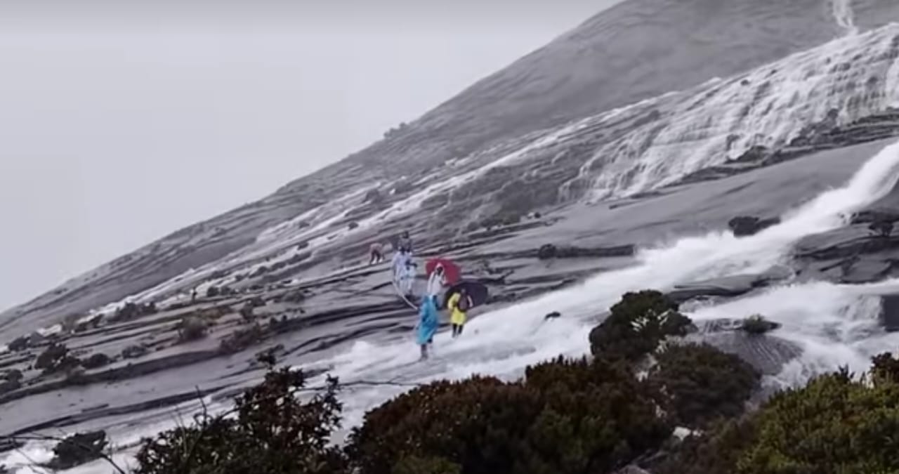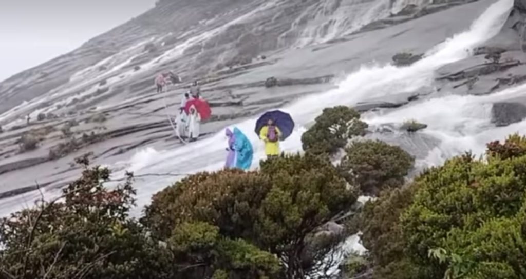 Difahamkan, kejadian aliran air yang deras di kawasan laluan pendakian Gunung Kinabalu adalah perkara lazim terutama ketika berlaku hujan lebat di kawasan puncak gunung.