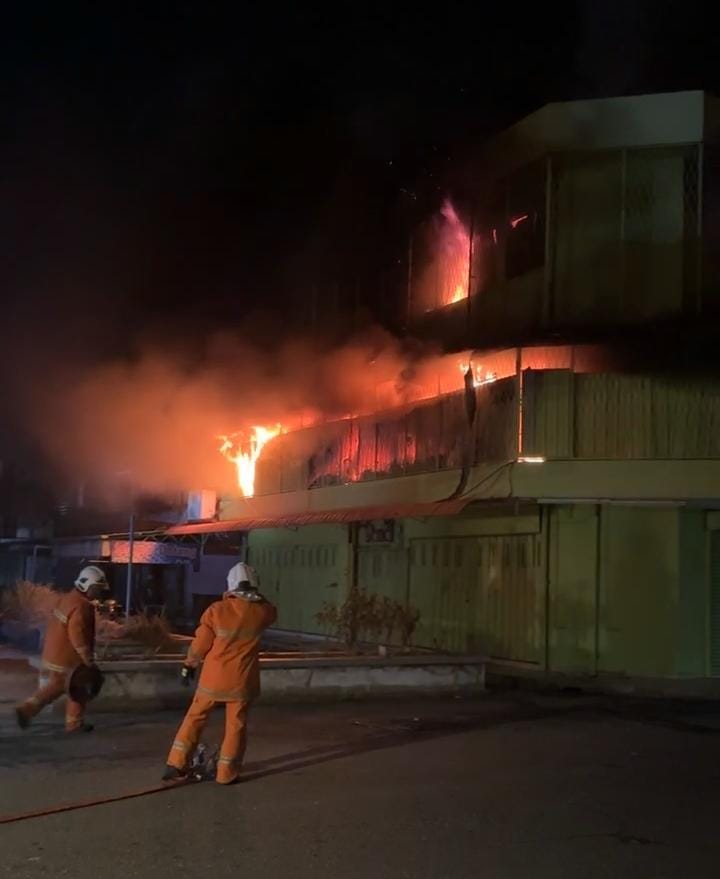 “Kebakaran membabitkan sebuah bangunan tiga tingkat. Tingkat dua dan tiga terbakar sepenuhnya.