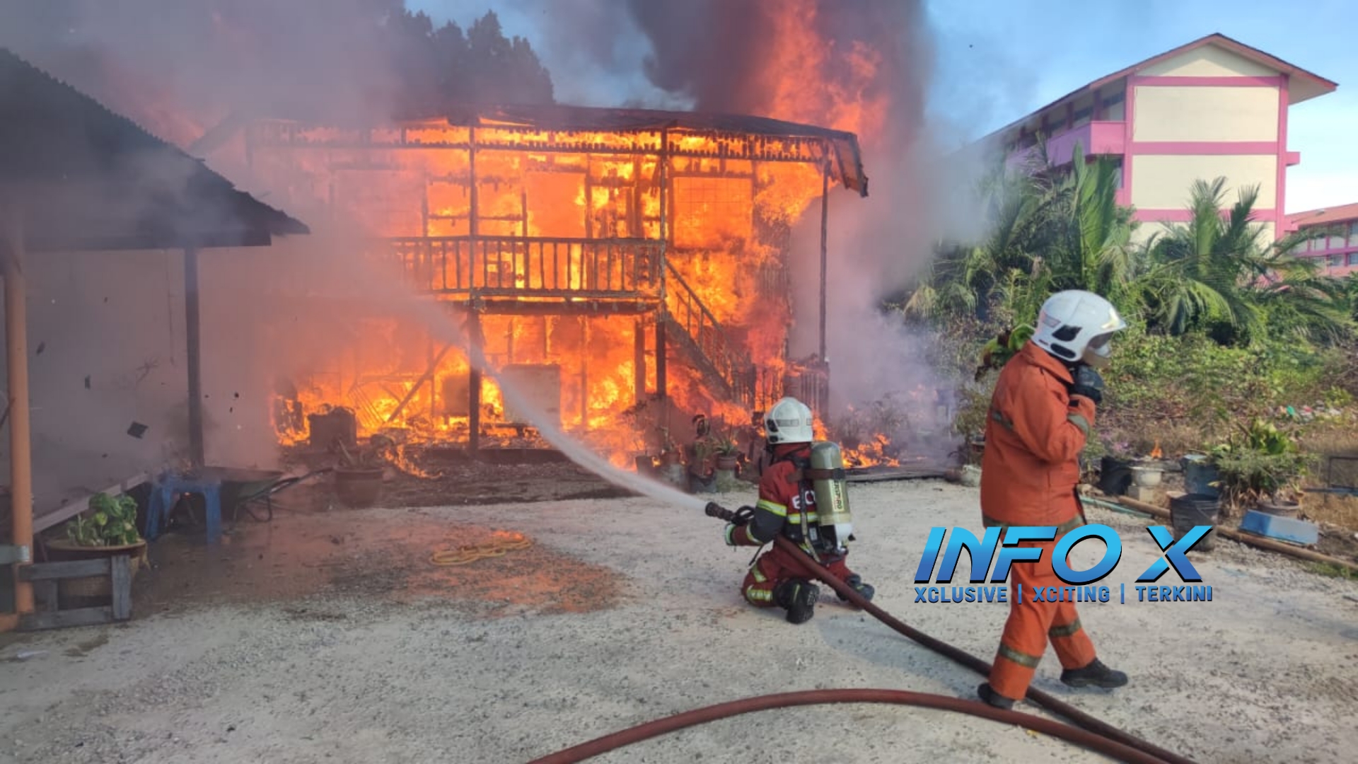 “Kebakaran membabitkan sebuah rumah jenis tidak kekal dua tingkat terbakar sepenuhnya.
