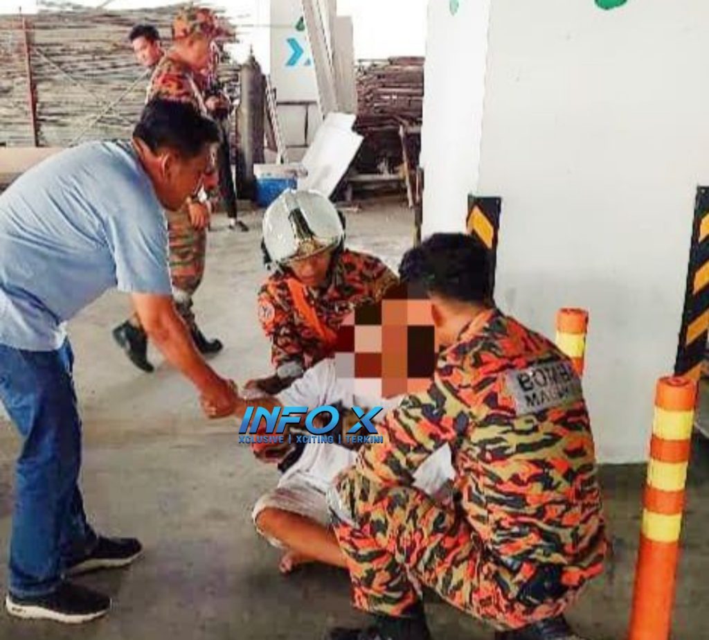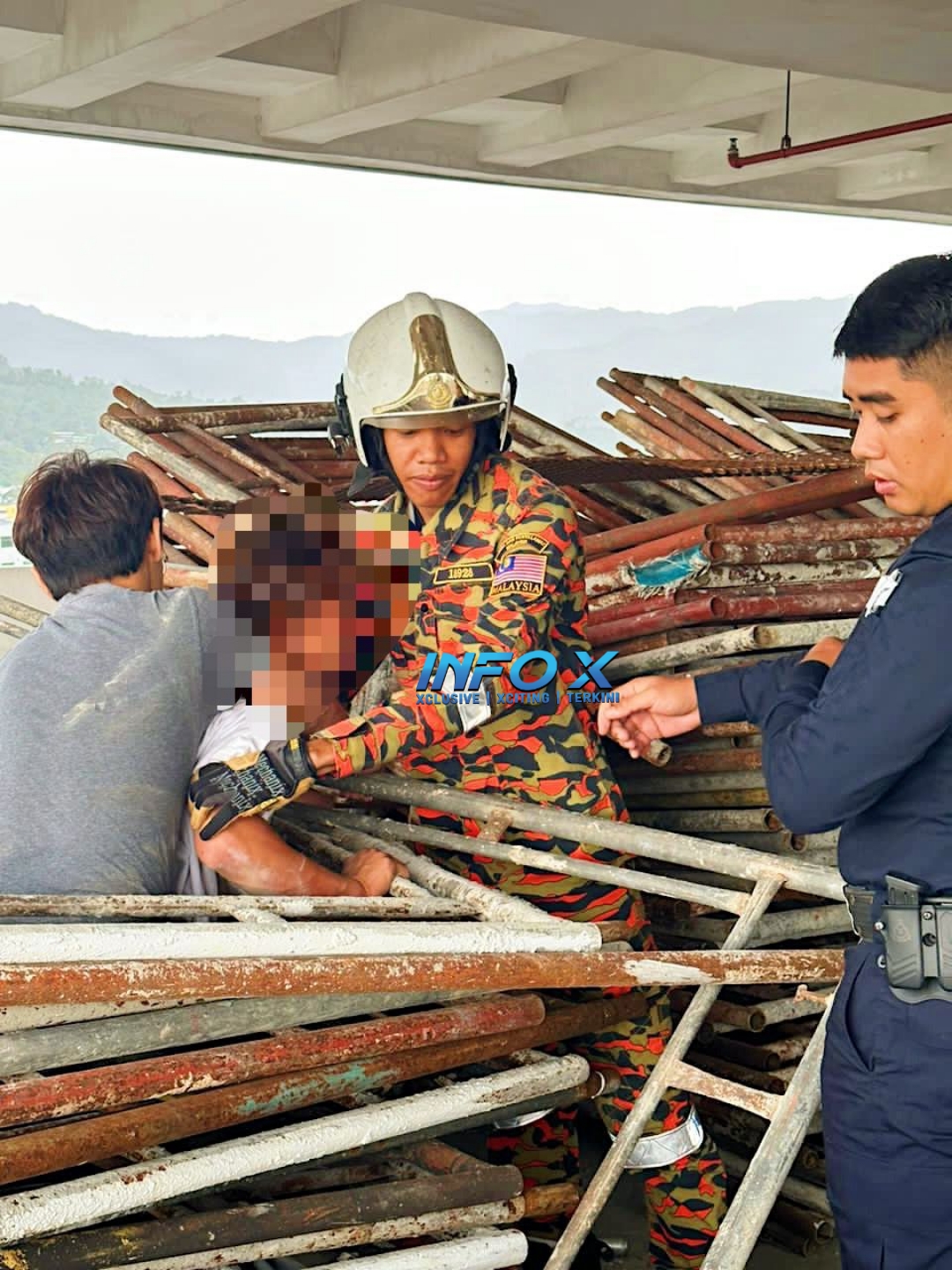 KOTA KINABALU: Tindakan pantas bomba berjaya menyelamatkan seorang lelaki yang cuba membunuh diri dengan terjun dari tingkat lima sebuah bangunan beli belah di Inanam, di sini, hari ini.