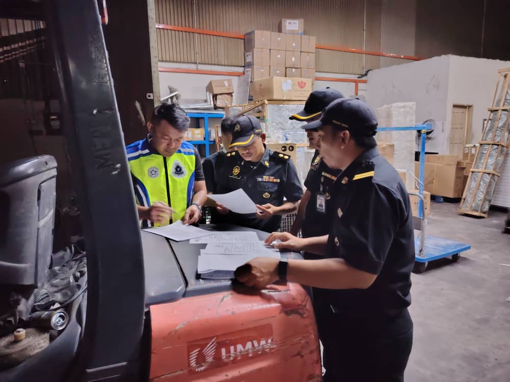 Pasukan operasi memeriksa sebuah stor penyimpanan di Inanam selepas disyaki melanggar takrifan halal. – Foto/KPDN