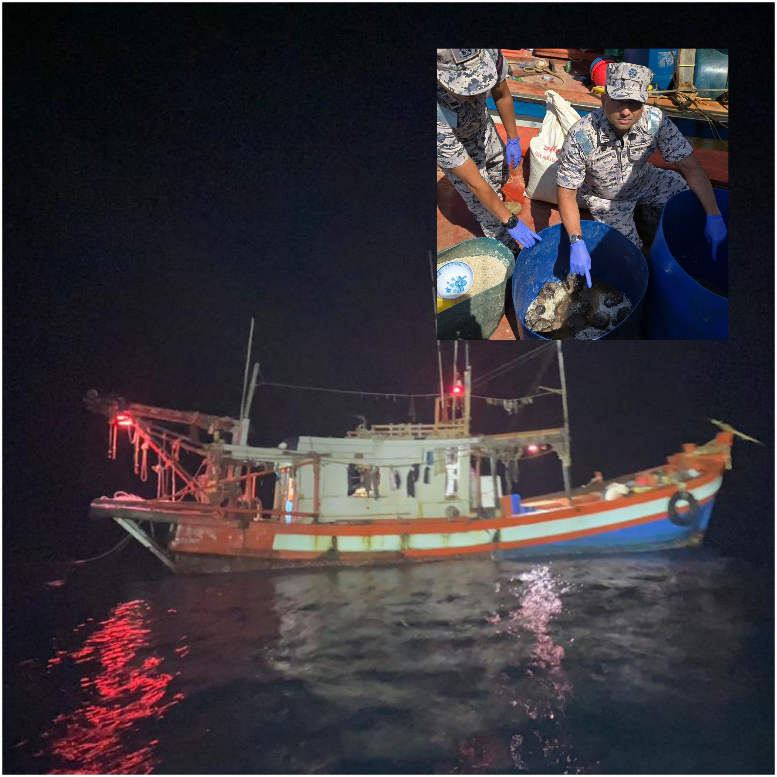 Pengarah APMM Zon Kudat, Komander Maritim Maurice Grenville Abeyeratne berkata, kedua-dua bot berkenaan dikesan aset ronda Zon Maritim Kudat ketika menjalankan rondaan Op Khas Pagar Laut.