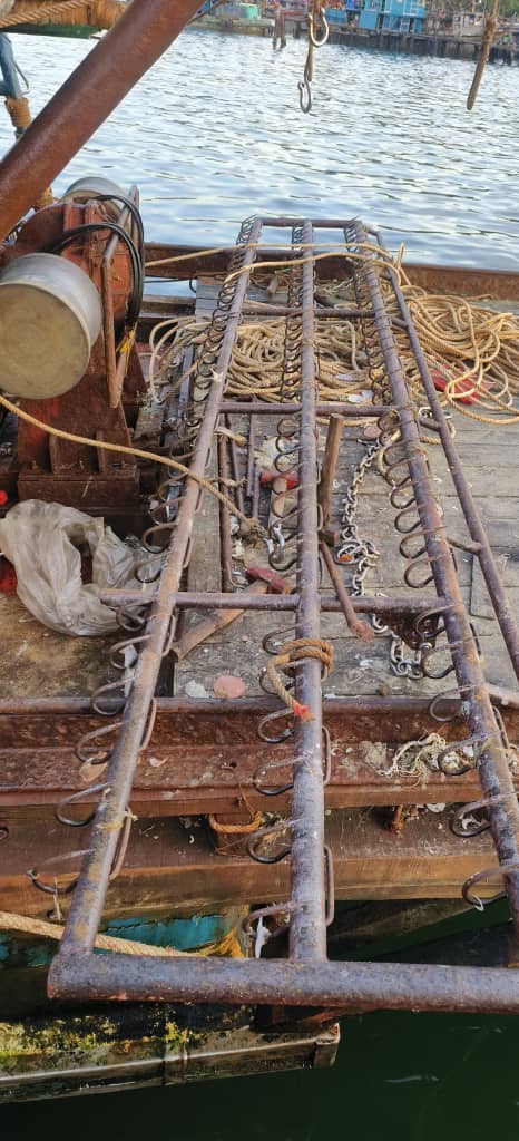 Peralatan menangkap balat yang diperbuat daripada besi dan diharamkan di negara ini. – Foto/APMM