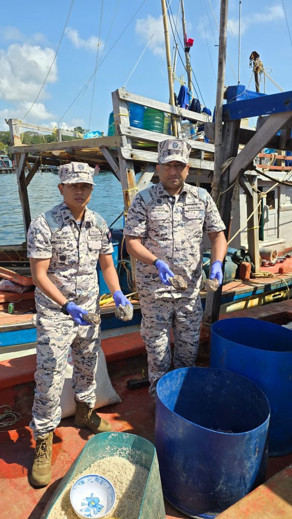 “Pemeriksaan lanjut terhadap bot turut menemukan kira-kira 20 kilogram balat basah yang dipercayai ditangkap bersama peralatan menangkap balat yang diperbuat daripada besi.