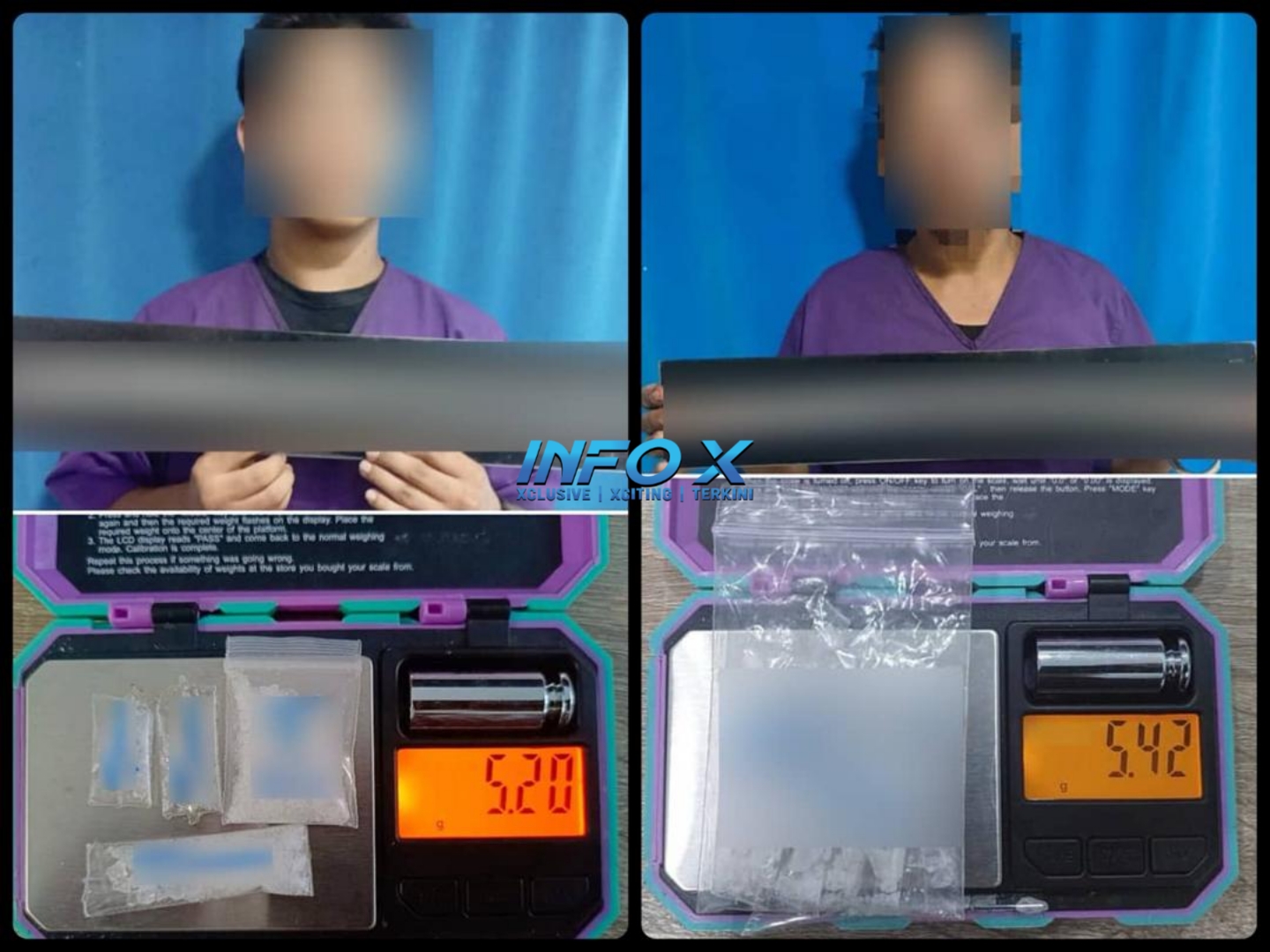 “Hasil pemeriksaan fizikal menemui empat paket lutsinar berisi ketulan hablur jernih disyaki dadah jenis syabu seberat 5.20 gram dianggarkan bernilai RM1,050.