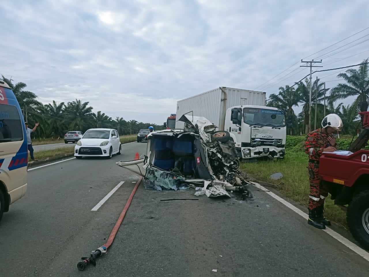 “Akibat kemalangan, Perodua Viva mengalami kerosakan teruk dan lori remuk di bahagian hadapan.