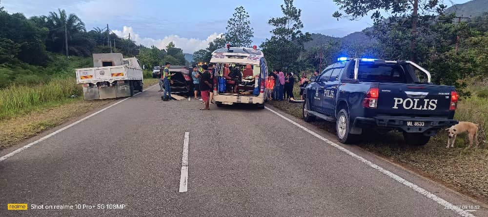 “Kemalangan dipercayai berlaku apabila kereta sedan terbabit cuba memotong kenderaan lain di hadapannya, namun gagal dan bertembung dengan pacuan empat roda di laluan bertentangan.