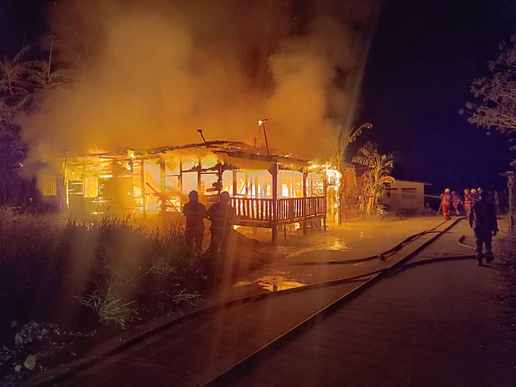“Sebaik tiba, pasukan bomba mendapati dua buah rumah jenis tidak kekal sudah musnah terbakar dan pasukan bomba terus menjalankan operasi.