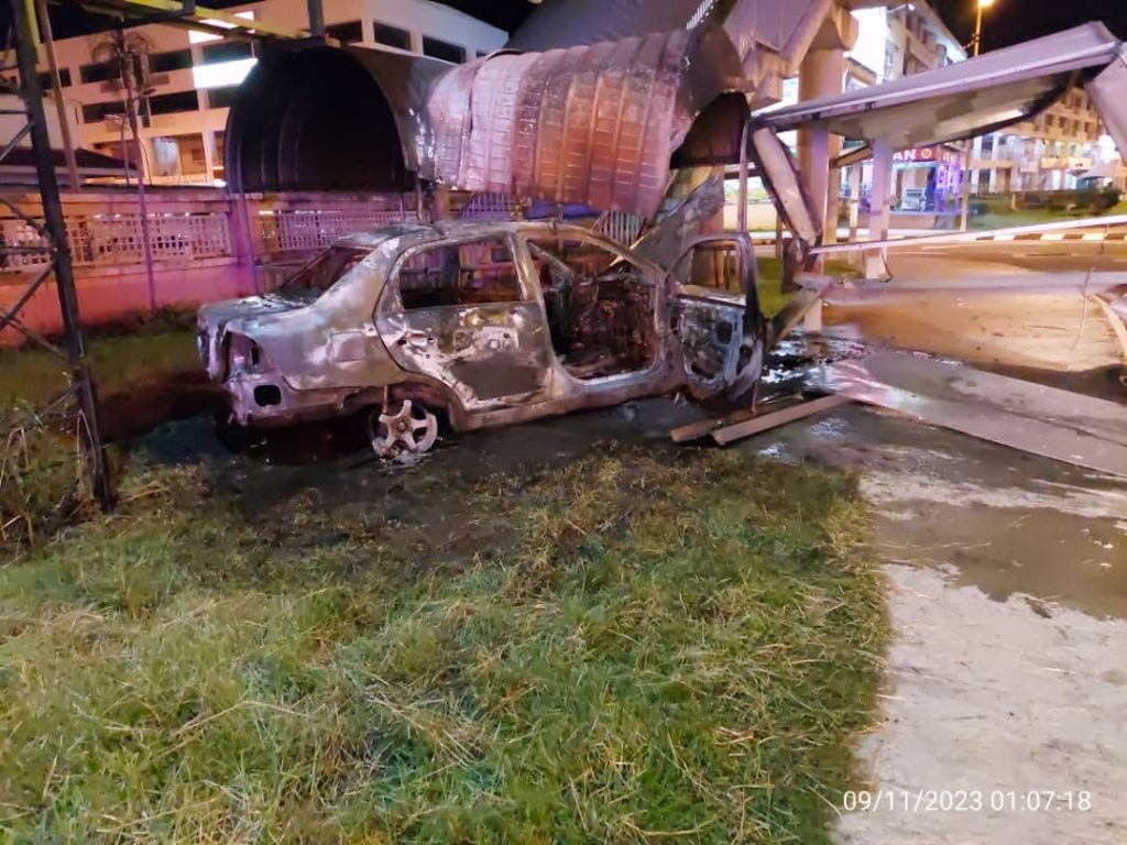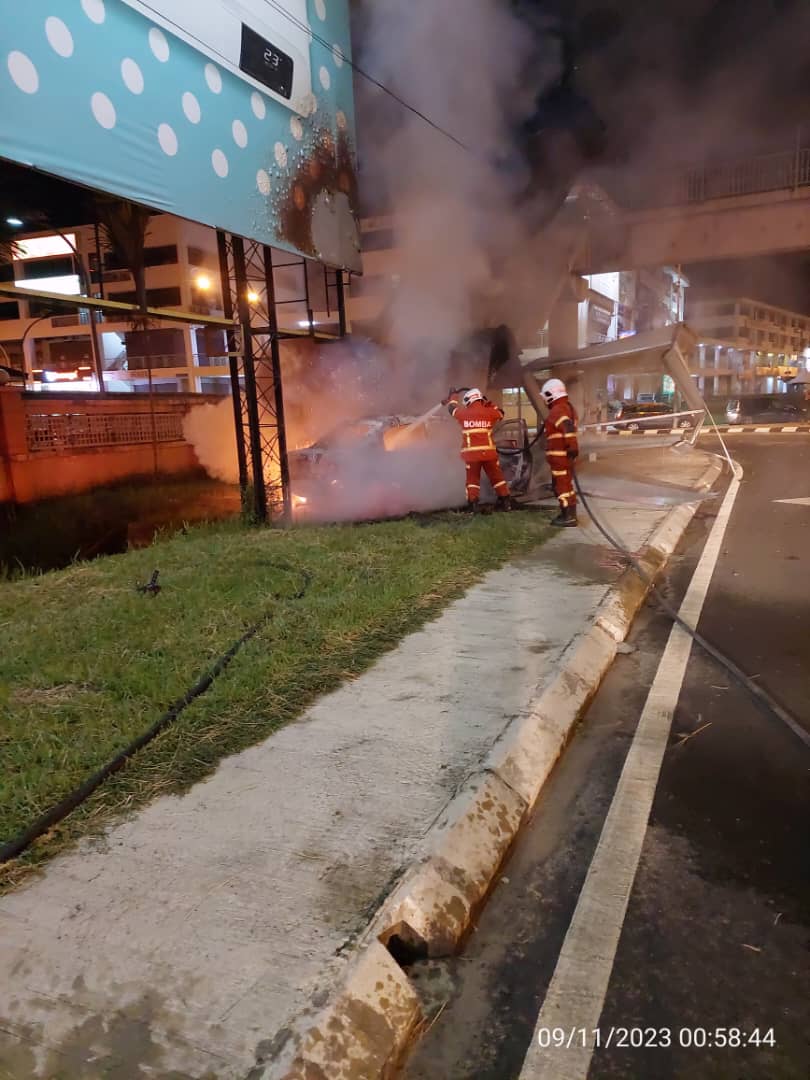 “Setiba di lokasi, sebuah kereta Proton Saga terbakar akibat daripada kemalangan dan pasukan bomba menjalankan operasi pemadaman.