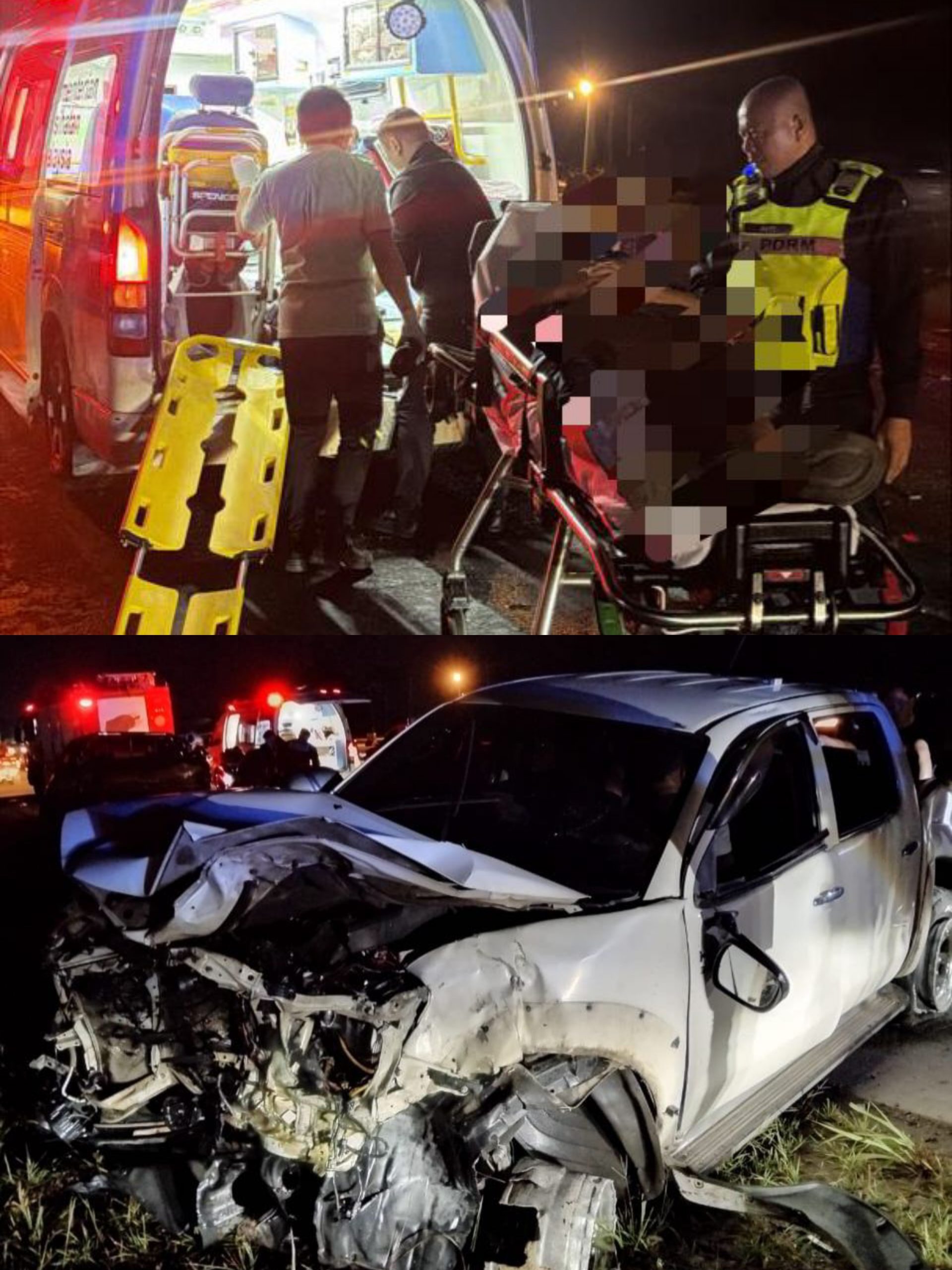 Dalam kejadian jam 4.40 pagi itu, Toyota Hilux Vigo dinaiki suspek dipercayai cuba melarikan diri sebelum hilang kawalan lalu merempuh sebuah Isuzu Invader.