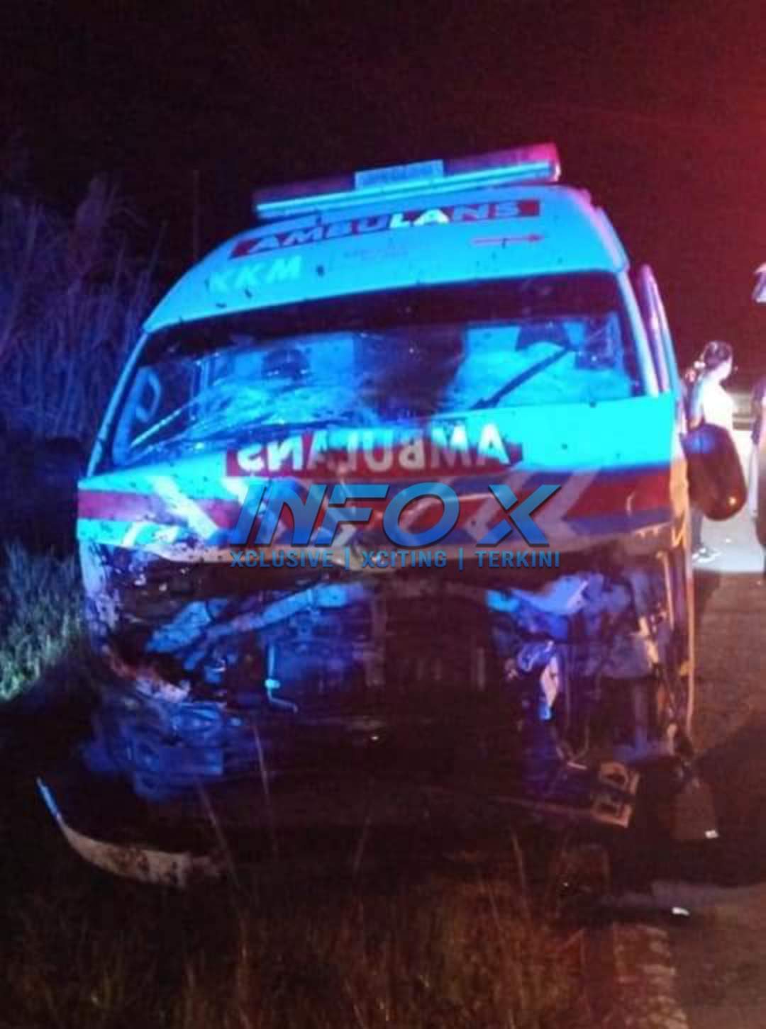 “Dalam kejadian itu juga, pemandu dan penumpang iaitu doktor, jururawat, pesakit dan seorang lagi ahli keluarga pesakit dilaporkan selamat serta tidak mengalami sebarang kecederaan,” katanya.