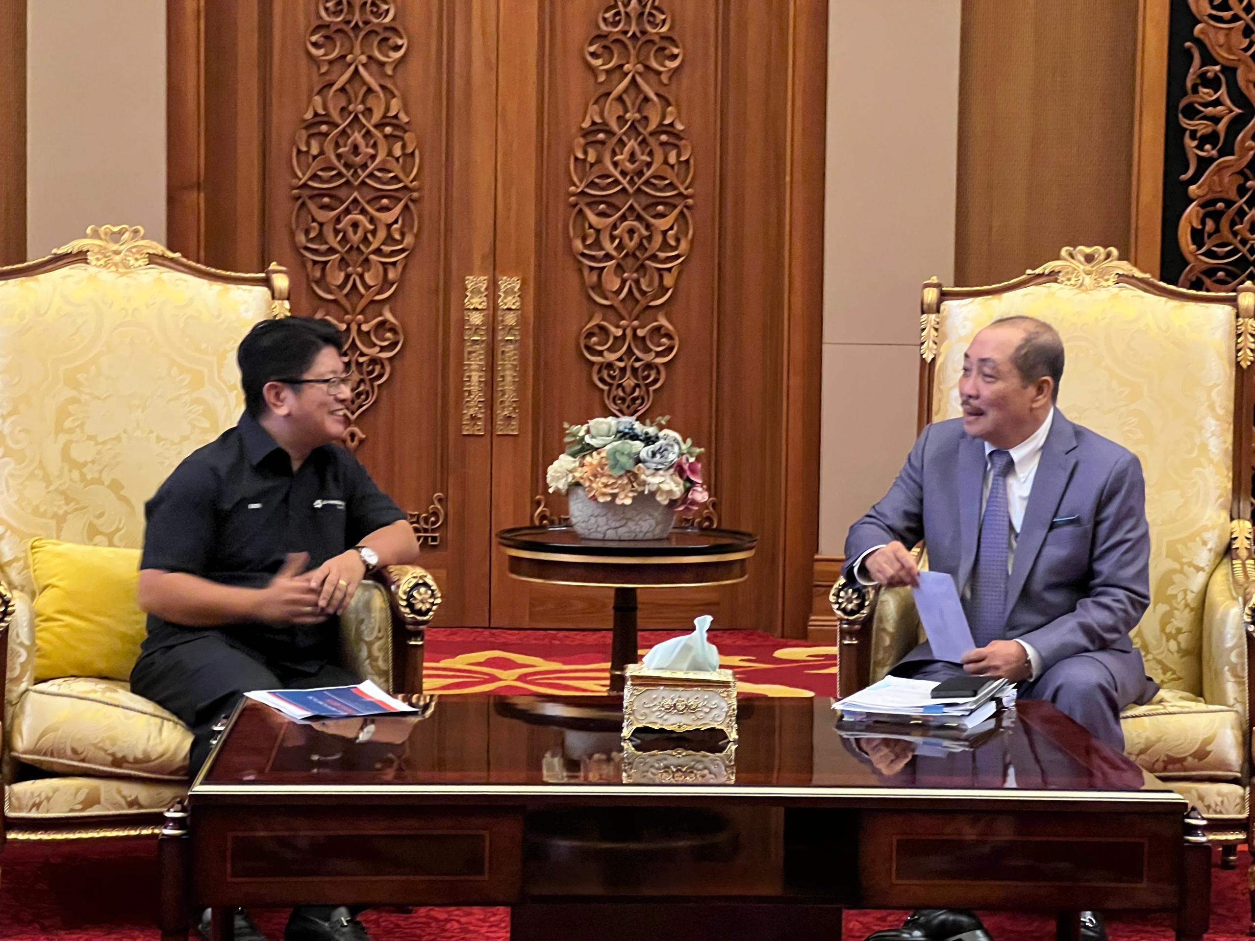KOTA KINABALU: Tuntutan hak Sabah dalam Perjanjian Malaysia 1963 (MA63) dan Perlembagaan Persekutuan menjadi antara topik yang dibincangkan Menteri Pembangunan Usahawan dan Koperasi, Datuk Ewon Benedick pada pertemuan dengan Ketua Menteri, Datuk Seri Hajiji Noor di sini, hari ini.