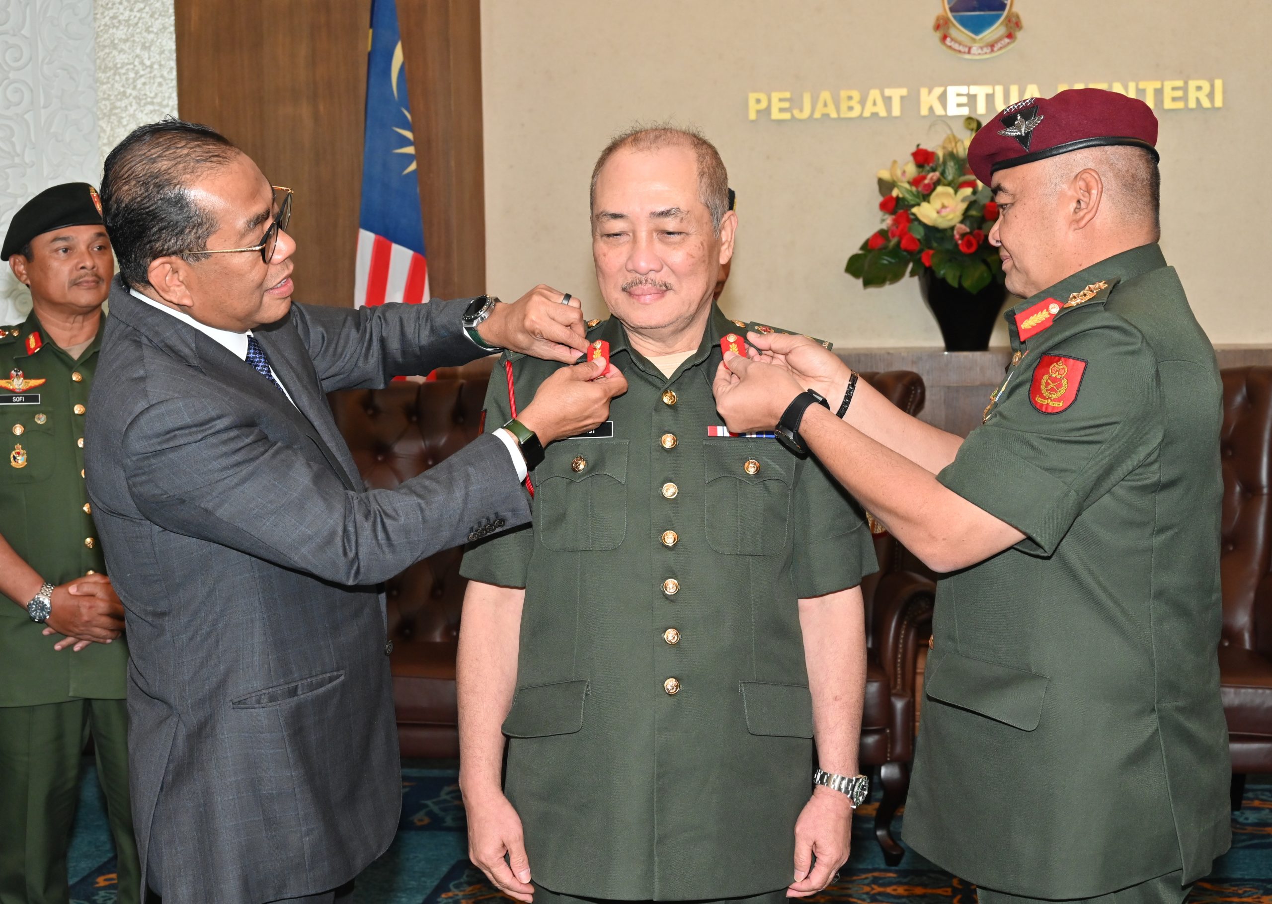 Upacara Pemakaian Pangkat Pegawai Tauliah Kehormat Askar Wataniah telah dilakukan oleh Menteri Pertahanan, Datuk Seri Mohamed Khaled Nordin dan Panglima Tentera Darat, Jeneral Tan Sri Muhammad Harizuddeain Jantan di pejabat Ketua Menteri di Menara Kinabalu, hari ini.