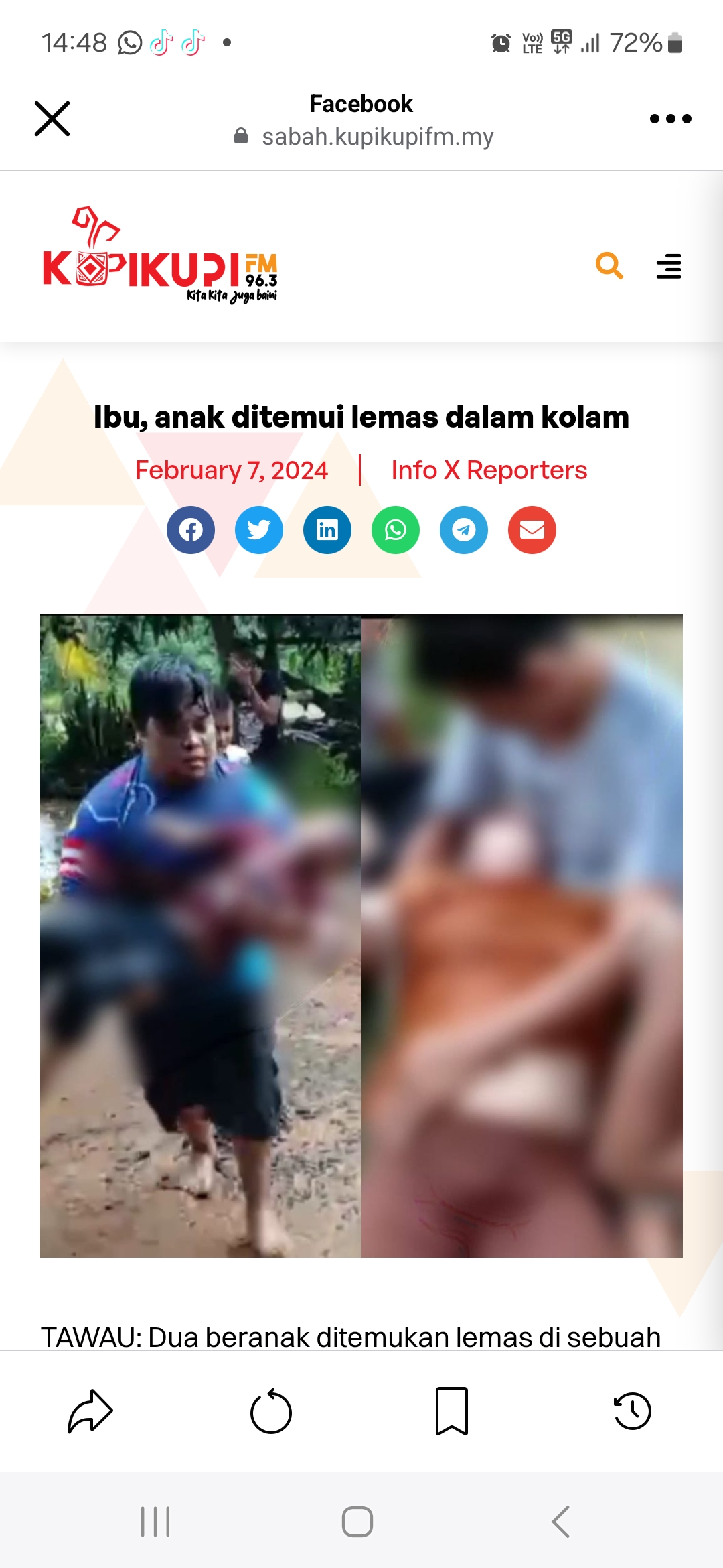Terdahulu, wanita bersama anaknya ditemukan lemas di dalam kolam berhampiran rumah mereka di Kampung Mangga, Jalan Nasib Kita, semalam.