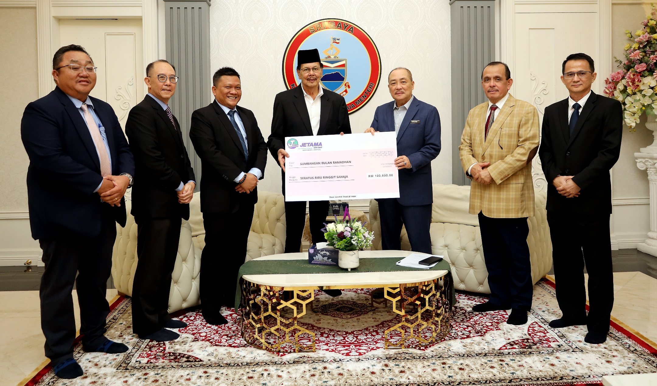 KOTA KINABALU: Syarikat konsesi air, Jetama Sdn Bhd menyampaikan sumbangan Ramadan berjumlah RM100,000 kepada kerajaan negeri.