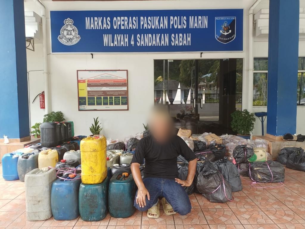Juragan warga tempatan yang ditahan kerana cuba menyeludup keluar petrol, diesel dan minyak masak bersubsidi ke Filipina. – Foto/PPM