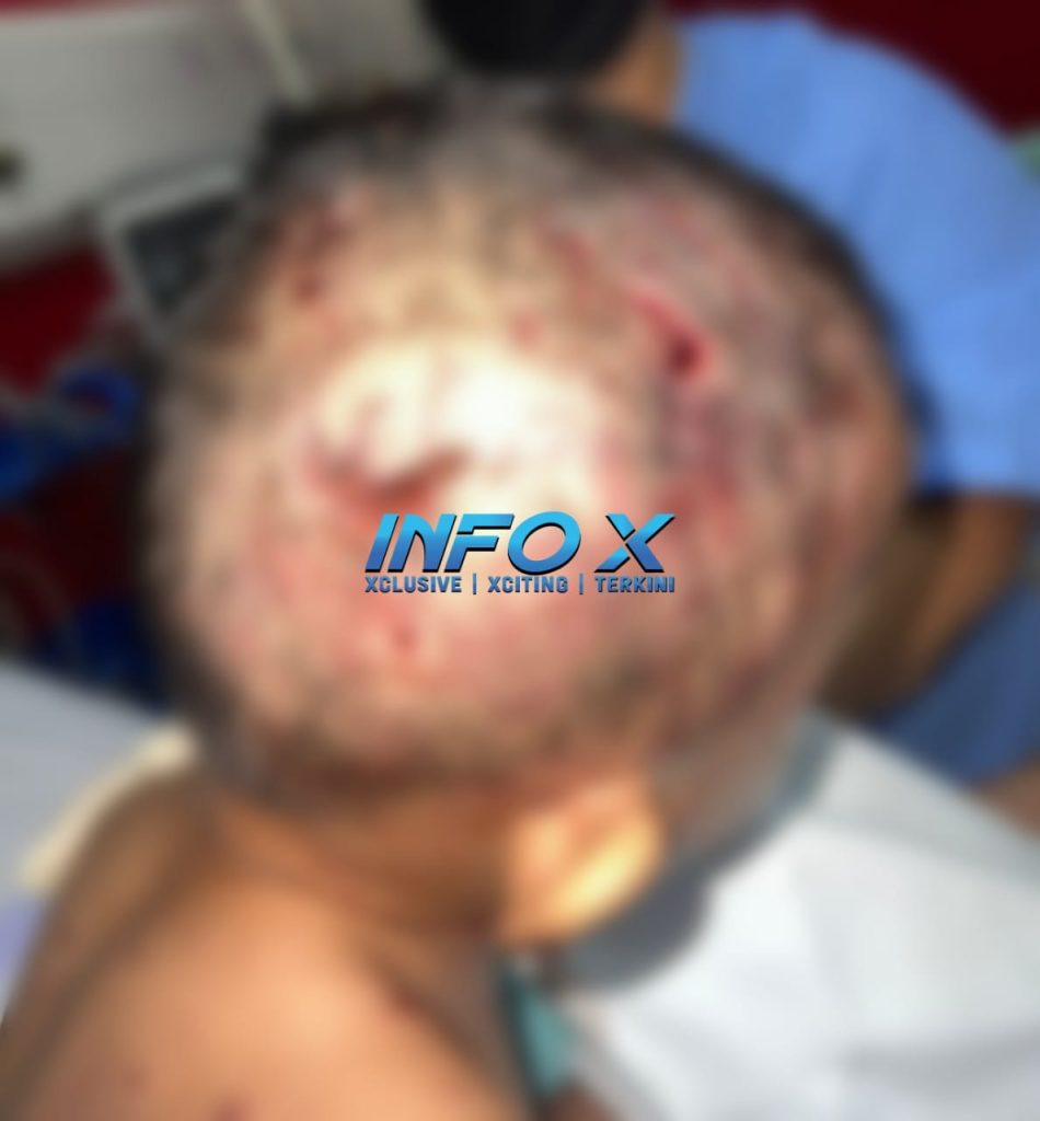 Keadaan mangsa yang digigit oleh kumpulan anjing liar di Pitas.