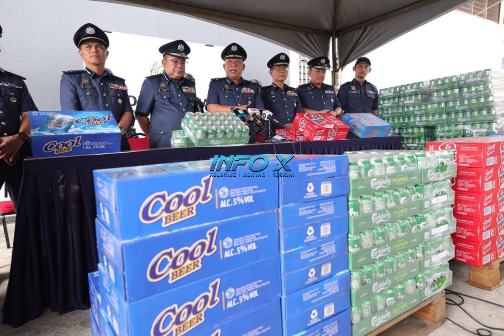 “Rampasan minuman keras jenama Tiger Lager Beer, Carlsberg dan Cool Beer yang dianggarkan bernilai RM1.16 juta termasuk duti dan cukai terbabit,” katanya.