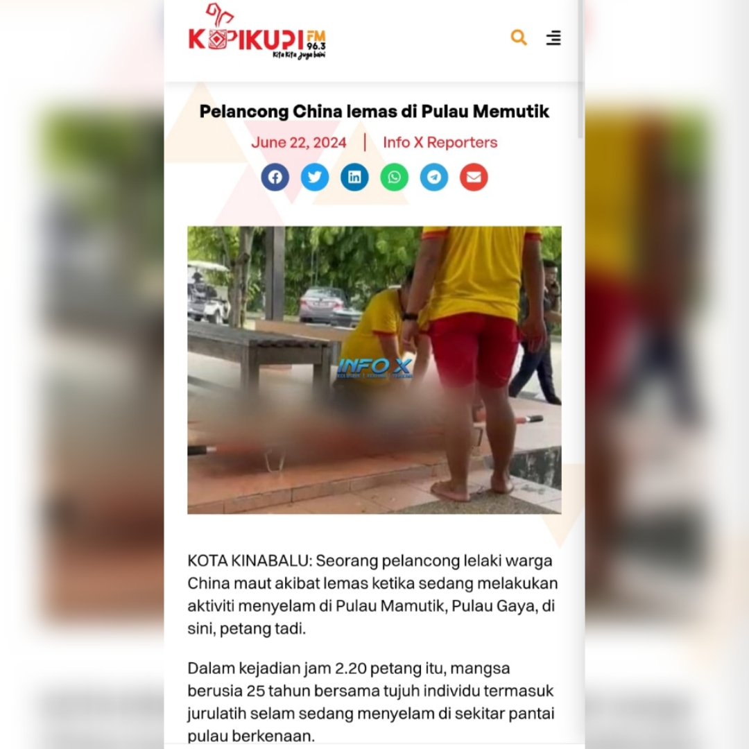 Kementerian siasat kes lemas babitkan pelancong China di Pulau Mamutik