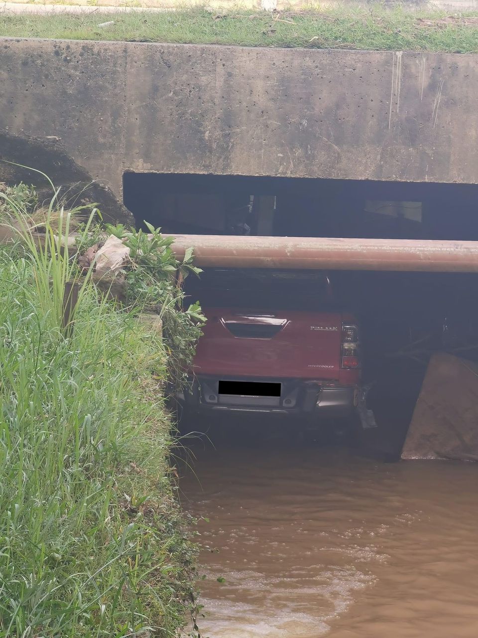 PENAMPANG: Polis mengesahkan pacuan empat roda yang ditemui di dalam parit di Pekan Donggongon, di sini, hari ini, adalah akibat daripada kejadian banjir yang berlaku di daerah itu, Isnin lalu.