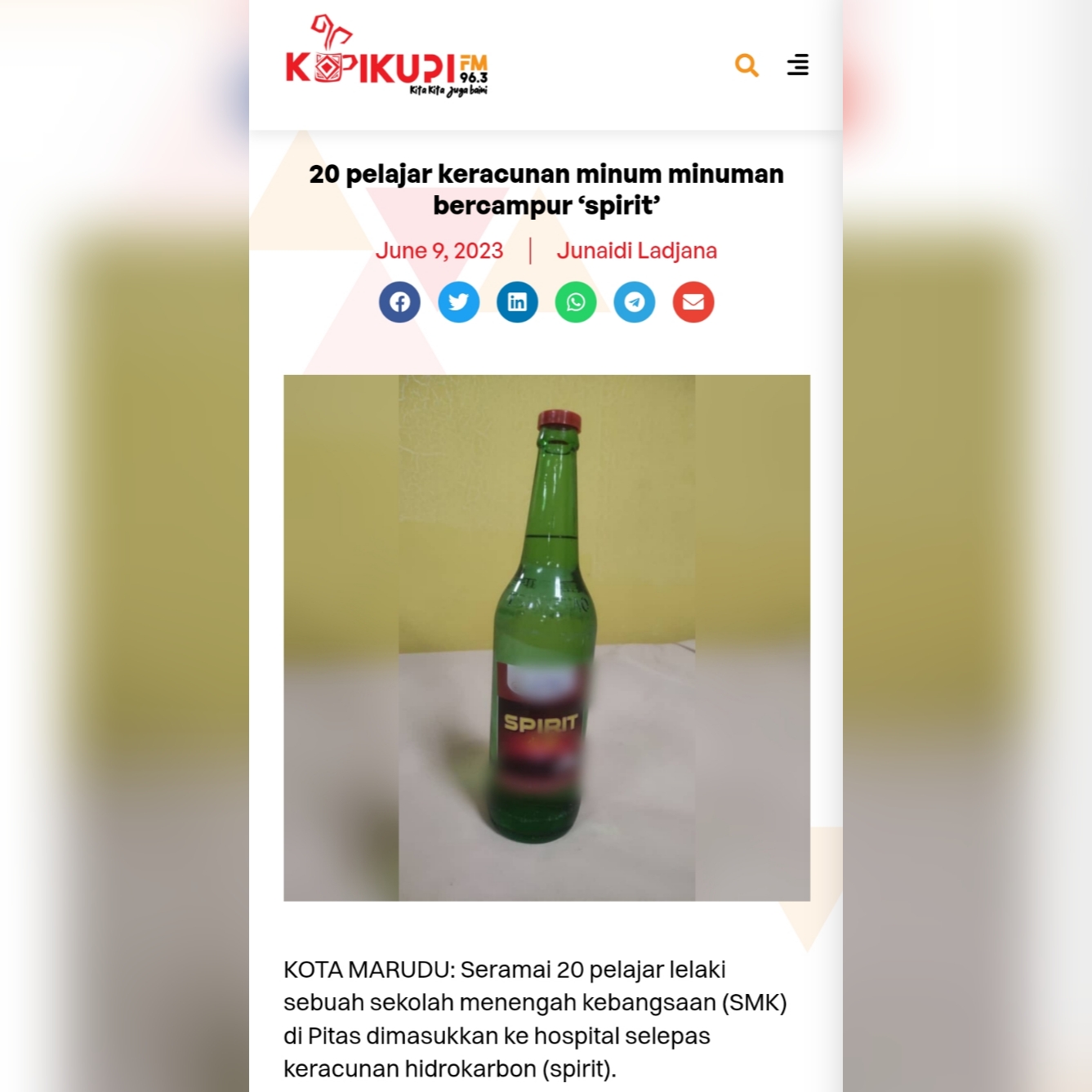 Terdahulu, seramai 27 pelajar lelaki di sebuah sekolah menengah di Pitas dimasukkan ke hospital akibat keracunan metanol selepas dikatakan minum minuman bikarbonat dan cecair spirit hingga menyebabkan keracunan.