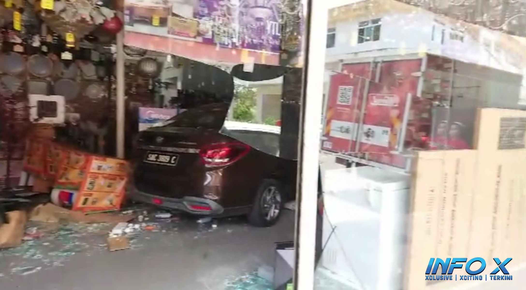Kereta ‘masuk’ kedai, dua pekerja hampir dirempuh