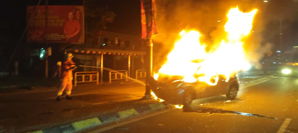 “Setibanya di tempat kejadian, kereta berkenaan didapati terbakar 100 peratus dan api berjaya dikawal sepenuhnya pada jam 3 pagi,” katanya.