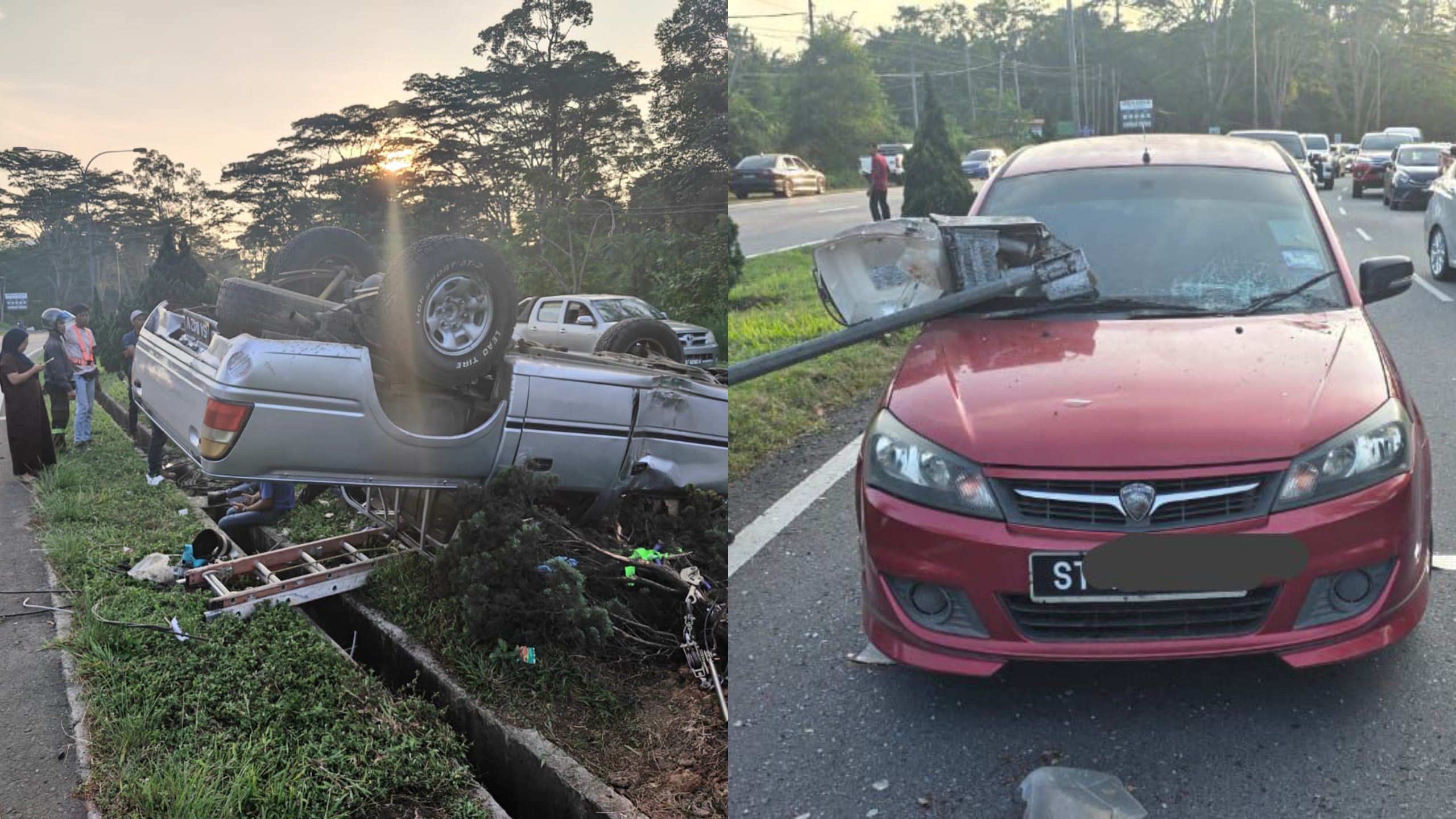 “Kenderaan itu kemudian merempuh tiang lampu jalan hingga tumbang sebelum terkena sebuah Proton Saga yang datang dari arah bertentangan,” katanya dalam kenyataan, hari ini.