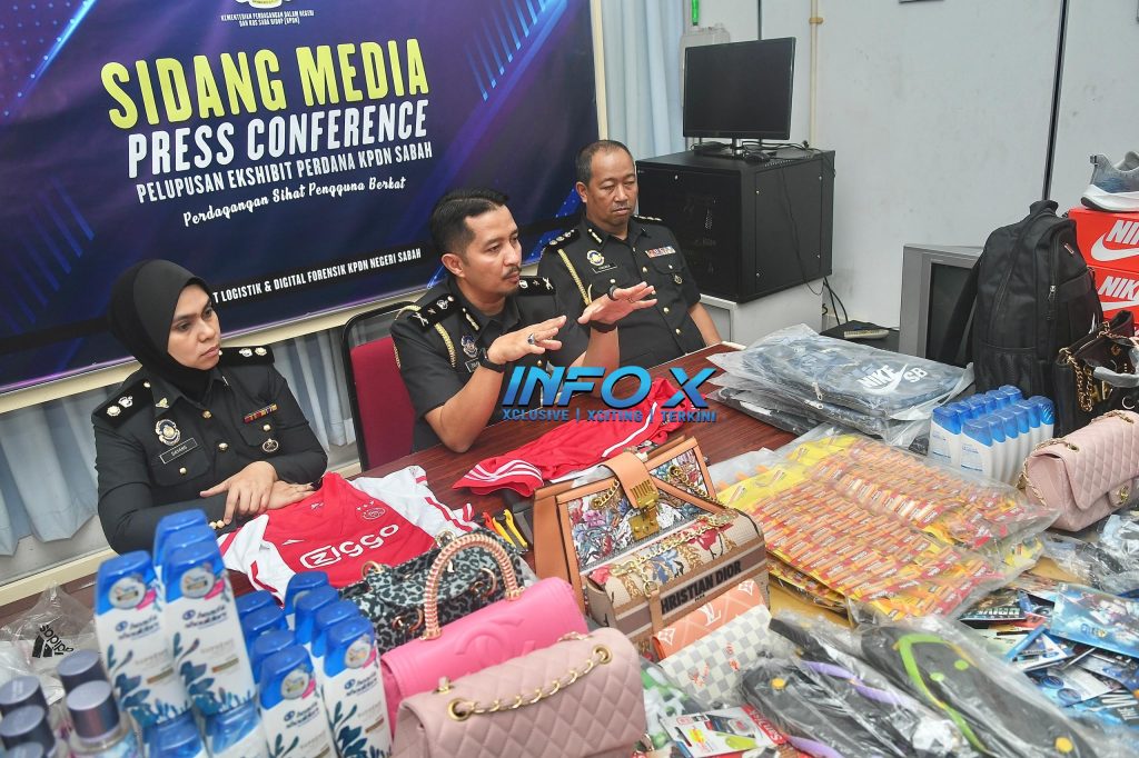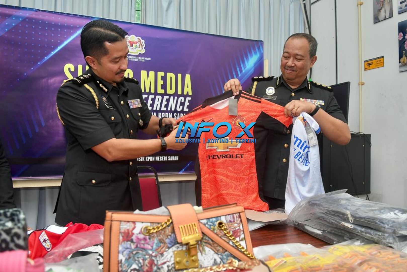 Zulfamy yang juga Ketua Pegawai Penguat Kuasa KPDN Sabah berkata, barangan ini juga diperoleh daripada kira-kira 20 premis sekitar Kota Kinabalu dengan rampasab baju jersi paling banyaj bernilai RM233,000.