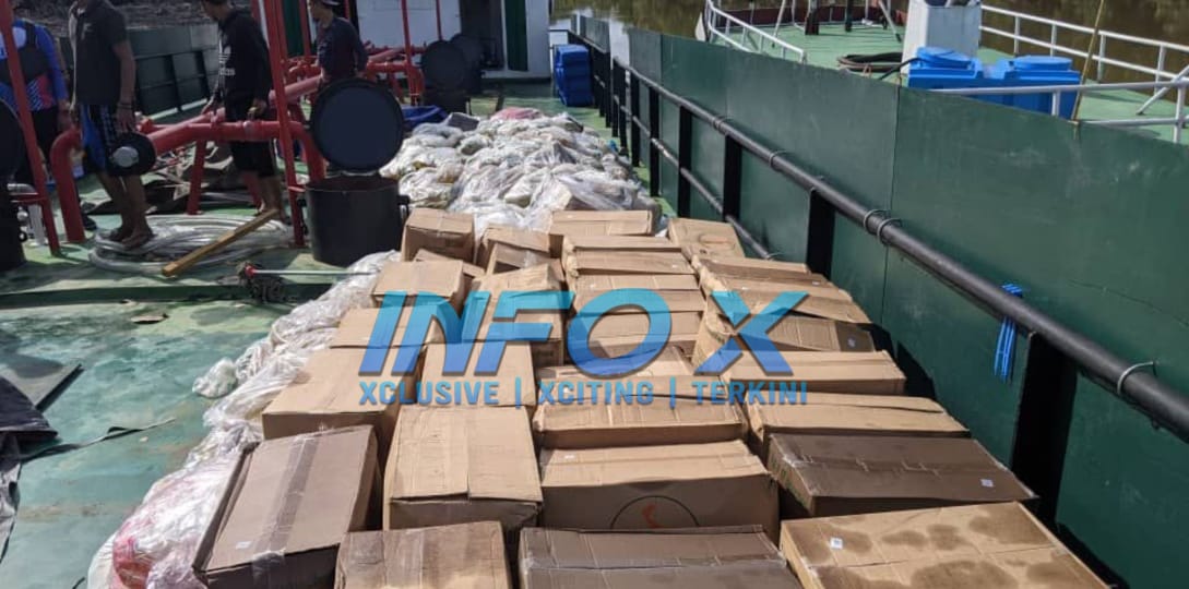 “Hasil serbuan, pasukan operasi menemukan sebanyak 9,690 kilogram minyak masak peket satu kilogram di atas kapal yang ditahan.