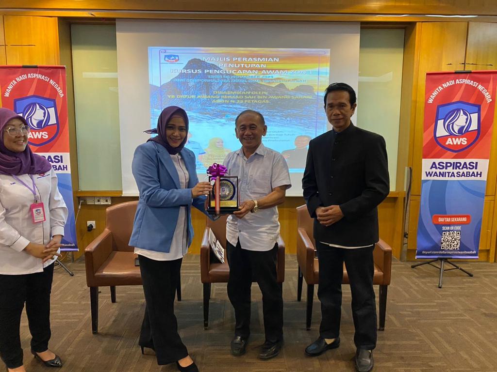 “Setakat ini, Kursus Pengucapan Awan Zon 1 anjuran AWS di Kota Kinabalu pada 6 November lalu berjaya menarik penyertaan seramai 65 orang wanita daripada kalangan penjawat awam, dan swasta termasuk usahawan kecil.