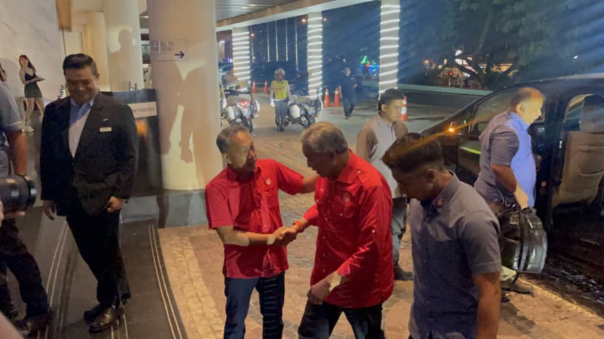 Ahmad Zahid tiba di sini pada kira-kira jam 8 malam tadi sebelum mengadakan pertemuan dengan pemimpin UMNO Sabah di sebuah hotel, di sini bermula jam 8.30 malam tadi. – Info X